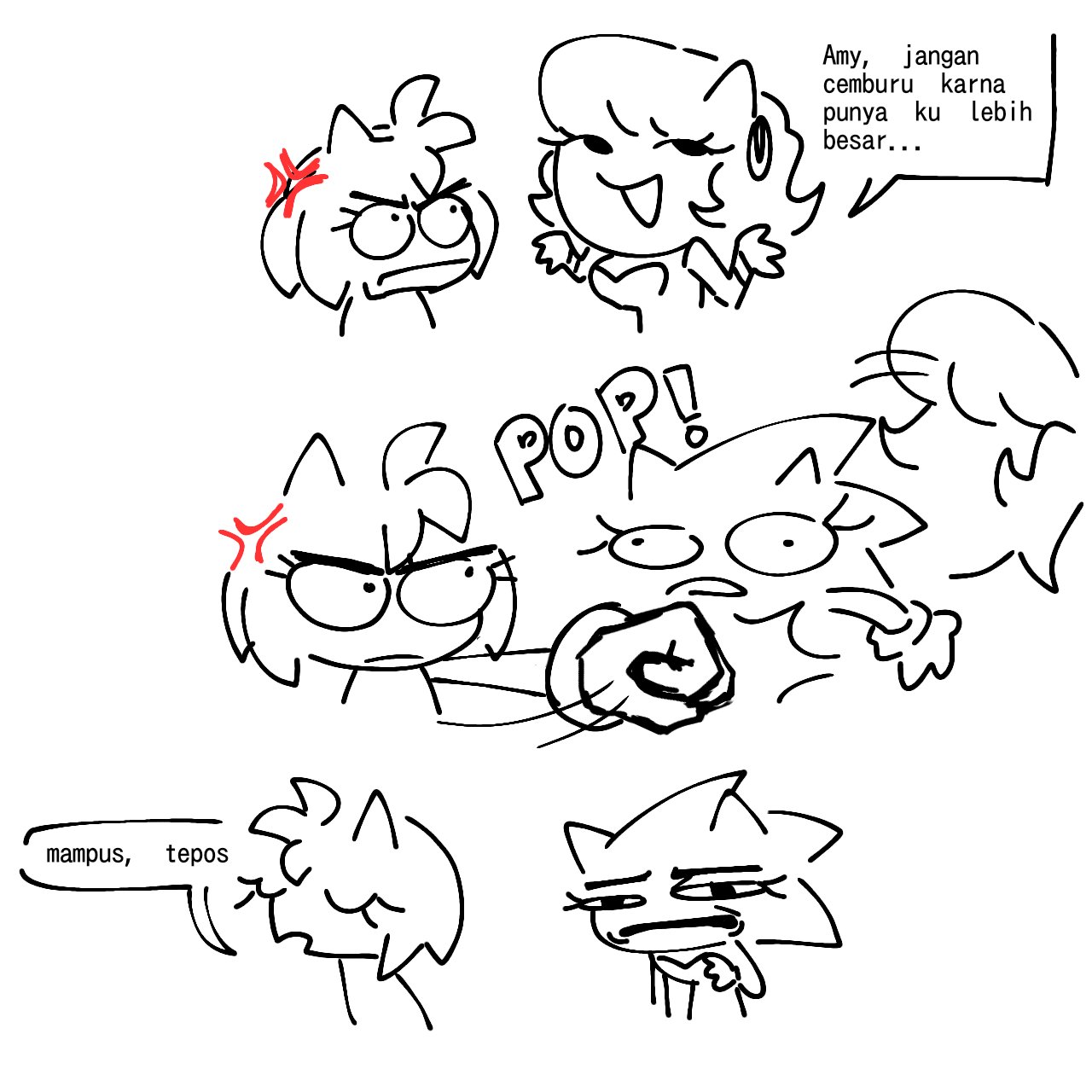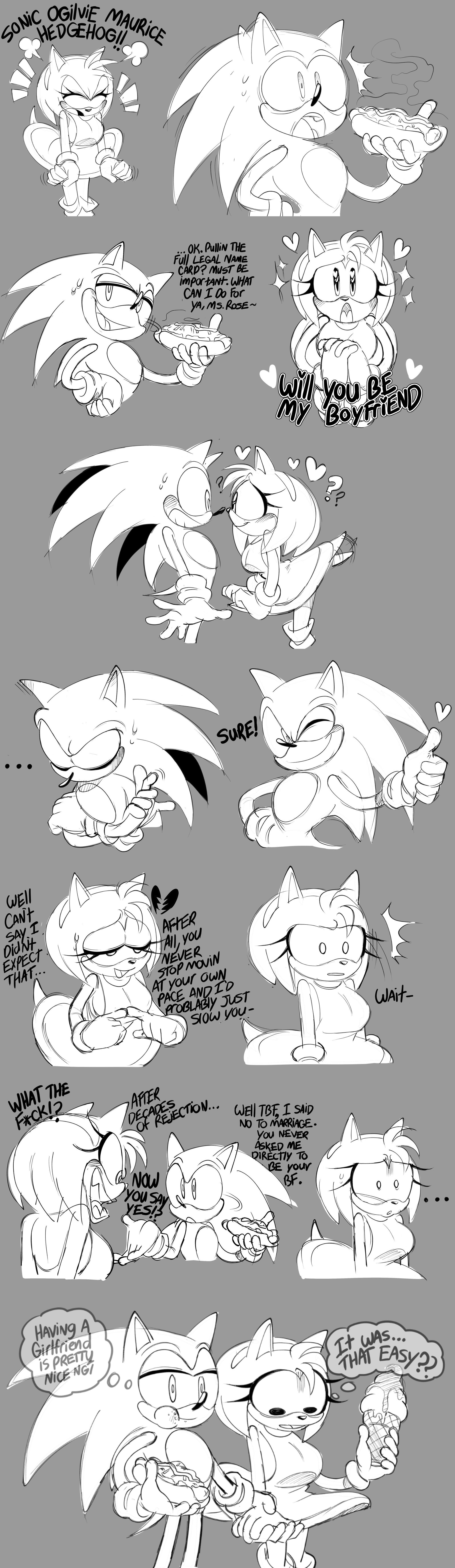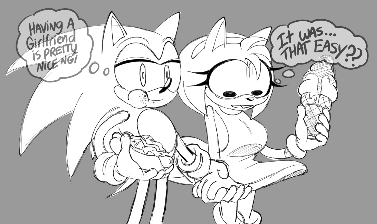 why do people draw images of sonic getting upset when one of his love interests is with another guy? sonic literally wouldn't care, if Amy was getting plowed by 15 guys it would not matter to him.