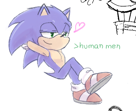 >>546718396I like to imagine most people in Sonic's world do wear clothes. Sonic is nude because he runs so fast and clothes would get in the way. Being nude is uncommon, but isn't taboo. Just my headcanon though.