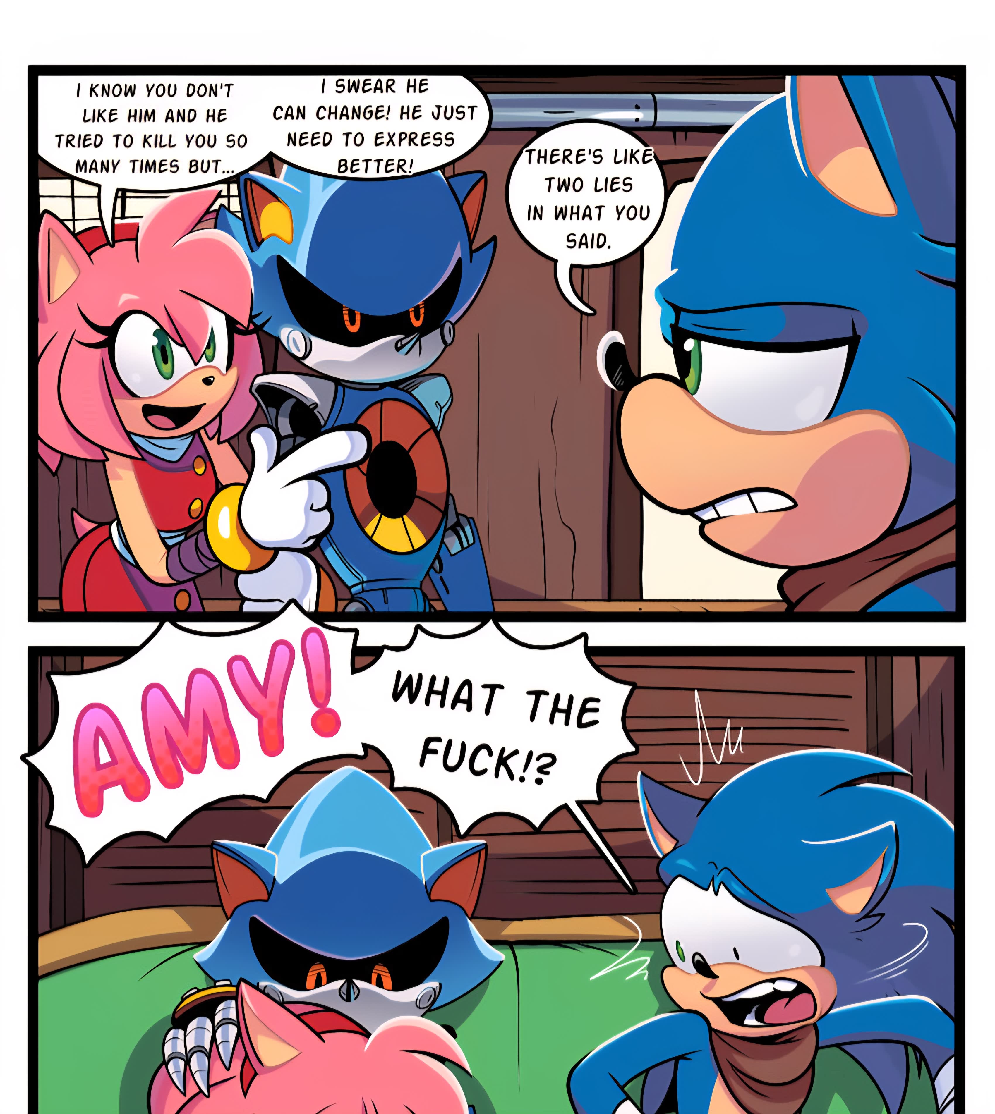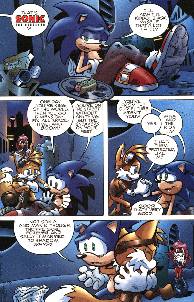 Here is the comicfag debate cycle>Comicfag claims their comic is in character>Gamefag points out stark differences>Comicfag insults the games>Gamefag says comicfag never liked Sonic at allI think the gamefags are right btw. If Archie, Satam, or IDW were forced by Sega to act exactly how Sonic does in the games most of you would instantly lose interest in those products.