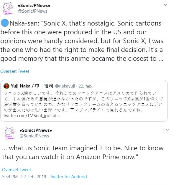 >>546758721This isn't an own, though?All this shows is that Naka wasn't heavily involved with the American cartoons. Which yeah, I never claimed he was.Sonic Team didn't have their 'vision' for Sonic solidified until much later. Sonic Team did not have a concrete idea for what to do with Sonic until at the very least the OVA. Which came out substantially after SatAM.The other interview alluded to was mostly shitting on Underground, not really SatAM in particular.This seems to be less a condemnation of Westnic and more-so a condemnation of Underground for not involving JP staff whatsoever and appreciation of the fact he got a heavy say in X.