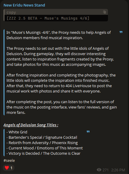 co-op tl;dr>"they're adding guilds?"yes, either called "sites" or "outposts".>"why would i join your schizo guild?"you'll be able to send and accept invite links to play co-op content (mostly mat farming) with your guild mates. there will also be an in-guild chat system, and probably other stuff later on.>"what's that gonna look like?"probably something like this: https://www.youtube.com/watch?v=QypDUe_uVV4>"but what about astra?"some agents will play differently in co-op, see pic related.>"how many guilds can i join?"up to 10, however, playing co-op with guild mates levels up that guild, so it's best to stick to just 1.>"is there gonna be room for us all?"we don't know the member cap yet, but it's reported to be around 50. we currently have aprox 52 active UIDs on NA, 33 on EU and 9 on ASIA.>"when does it launch?"in 2.5, so around the end of january.reminder to - add /zzz/ to your account info so we know you're one of us- send a friend request to everyone else from your server- reply with your UID to this post if you want to get added to the listhttps://rentry.org/ZZZ-FriendsEnlist today!and consider brainstorming name ideas: https://strawpoll.com/PbZqbAVdByN