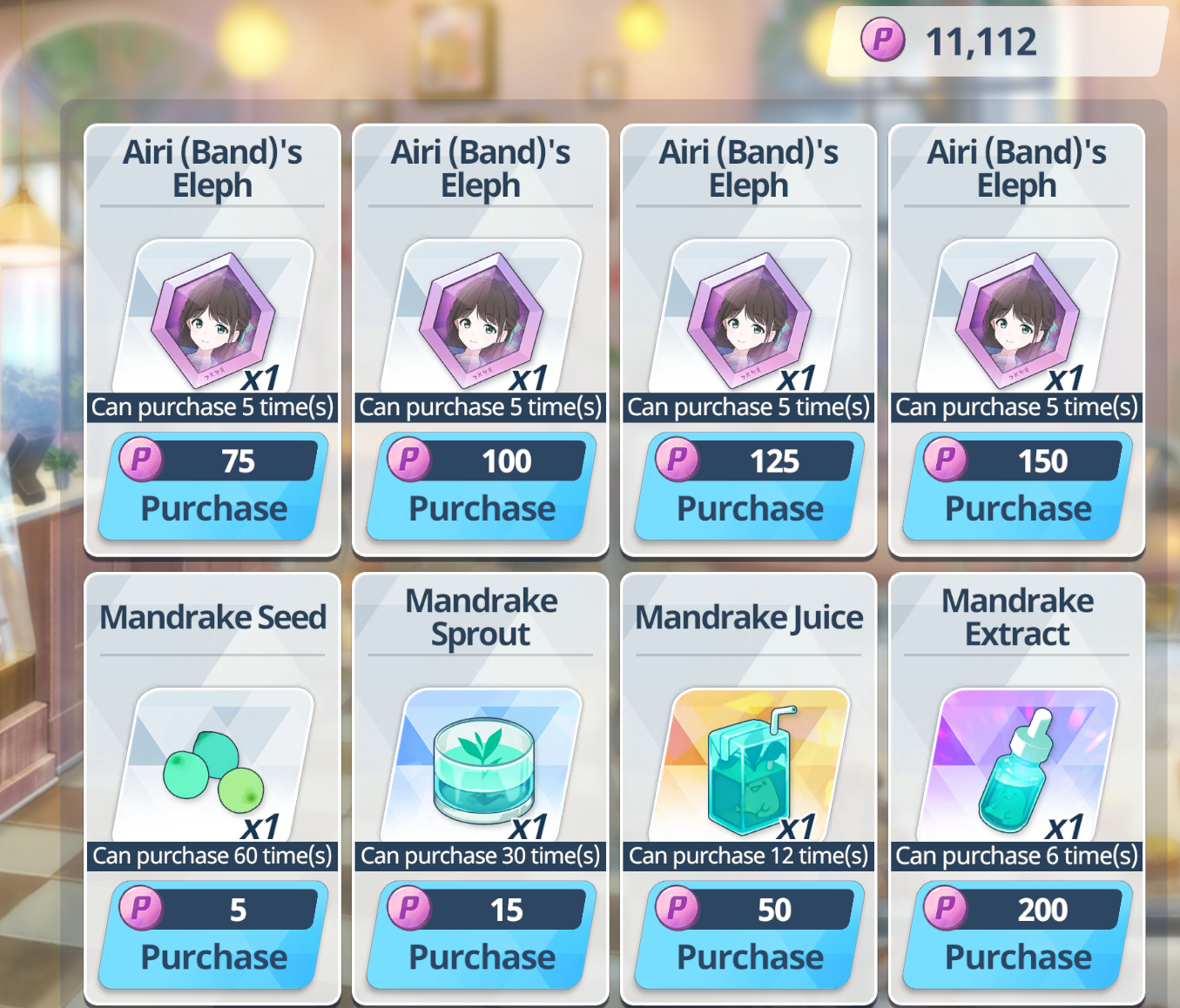>>546761172Verify which purple artifacts you're low on and correct that if possibleBuy gifts if affectionmaxxing, that's a lot of giftsI don't think anyone uses B.Airi but if you want to try buy her elephs