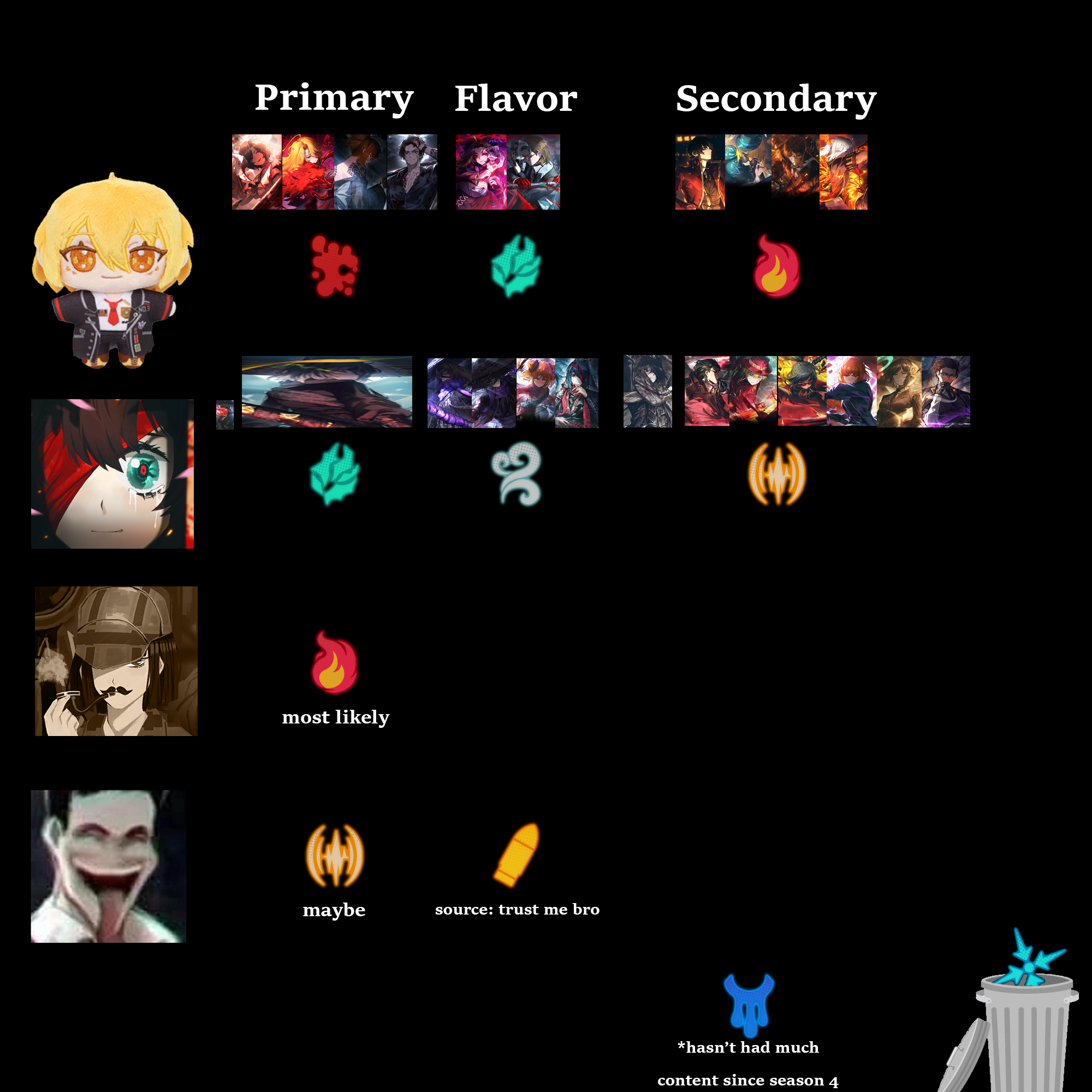 But the current team of CEO Hong, Wei Sang, Mao Faust, Si Rodya, Si Gregor, Xichunmael and Cinqusault is just too strong. And if you want to swap out 'sault for another Heishou in story content then my pick would be Mao Outis for Ebony Stem's count passive, and why would I swap that out for a single free S3 and a unit with no buffs, no poise, no nothing?