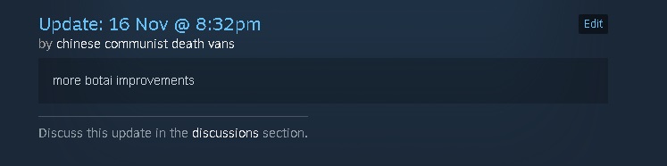 arma 3 dev is based edition>Demo DaysNext: https://itch.io/jam/agdg-demo-day-66Previous: https://itch.io/jam/agdg-demo-day-65Older: https://hackmd.io/LhEB6VCZSx-oBalI2cWWoA>AGDG resourceshttps://hackmd.io/dLaaFCjDSveKVeEzqomBJw>My arma mod which you can play if you have arma 3https://steamcommunity.com/sharedfiles/filedetails/?id=3569474876>Helpful linksNew Threads: >>>/vg/agdgArchive: https://arch.b4k.dev/vg/search/subject/agdg//agdg/ Steam Games: https://made-by-agdg.vercel.app/Steam Games by AGDG: https://agdg-steam.netlify.app/>How to Screen Recordhttps://getsharex.com/https://obsproject.com>How to Webmhttps://github.com/argorar/WebMConverterhttps://github.com/michaelmob/WebMCam>Previous thread>>546669783
