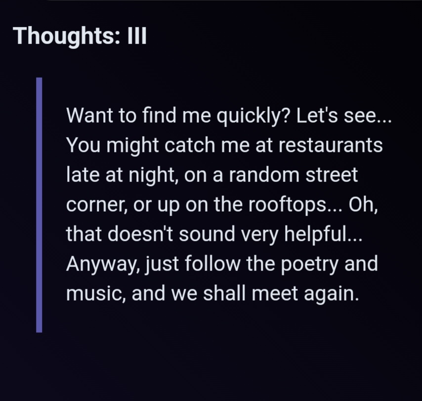 >>546895038the game pretends none of them exist except yap and her survey messages and just because she's the poster girl