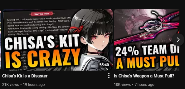 Can't believe Chisa killed the hype. What happened? She should have been a can't miss character. >black hair>red eyes>scissor weapon>jk uniform