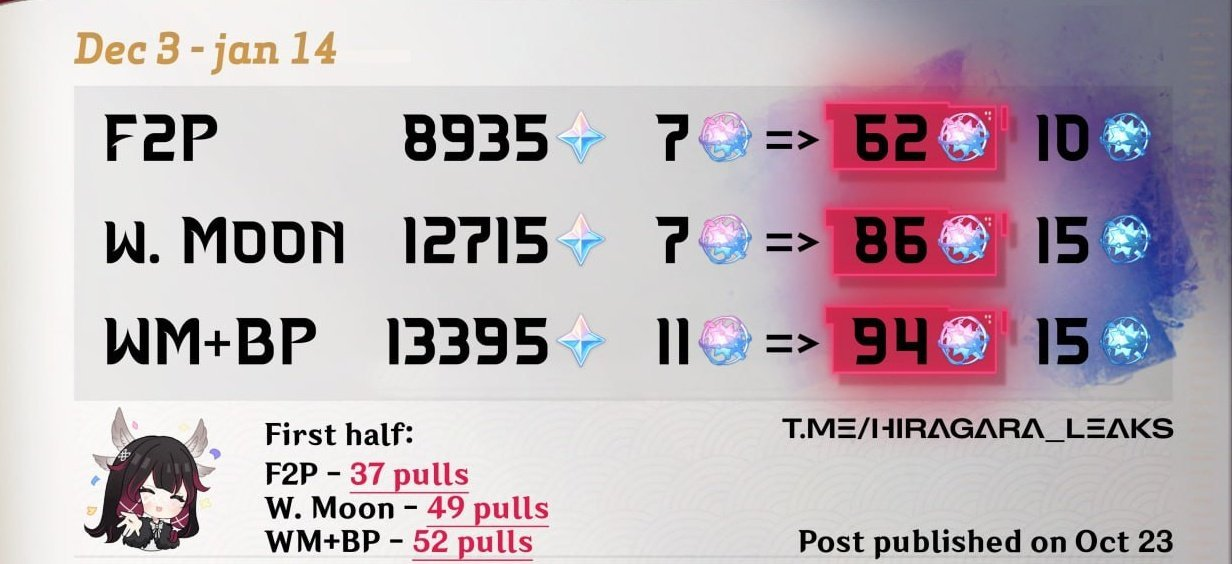 Previous: >>546792859 >Current character banner: Arlecchino, Zhongli, Lan Yan, Yun Jin, Rosaria>Current weapon banner: Crimson Moon's Semblance (Polearm), Vortex Vanquisher (Polearm)https://www.hoyolab.com/article/42197501 >Daily check-in rewards (permanent)https://webstatic-sea.mihoyo.com/ys/event/signin-sea/index.html?act_id=e202102251931481&lang=en-us >Redeemable Codes with Primogems (all regions): https://genshin.mihoyo.com/en/giftGENSHINGIFT0FQBAJNXCUFU >Useful Links (Wiki, Simulators, Maps, Character Builds, /gig/ friendlist, Third-Party Tools, etc.)https://rentry.org/giglinks /gig/ OP pastebin (use this if making new thread):https://pastebin.com/ca0zseQ9