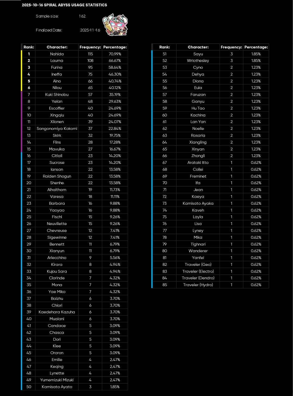 So Nefer or Flins/Lauma or Ineffa/Columbina/xfourth slot is?