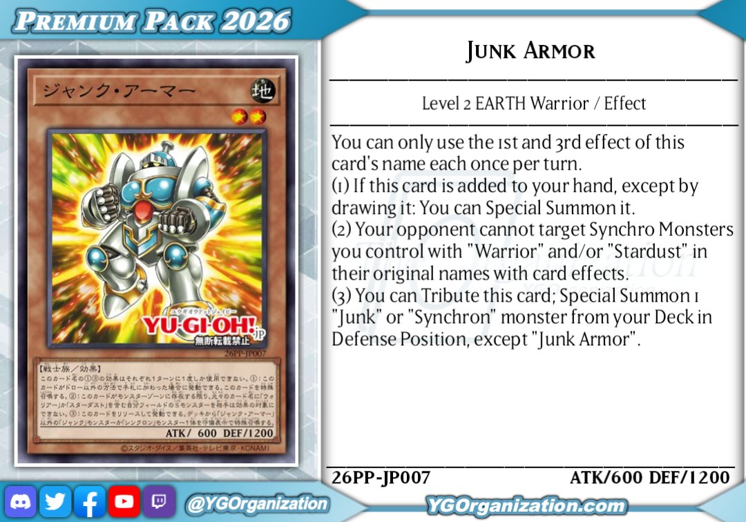 >>546833158Honestly liking the Junk addition. Junk/Synchron/Stardust have been over saturated with tuners for a while now so many non-tuner who can basically summon themselves is a net plus in my books.