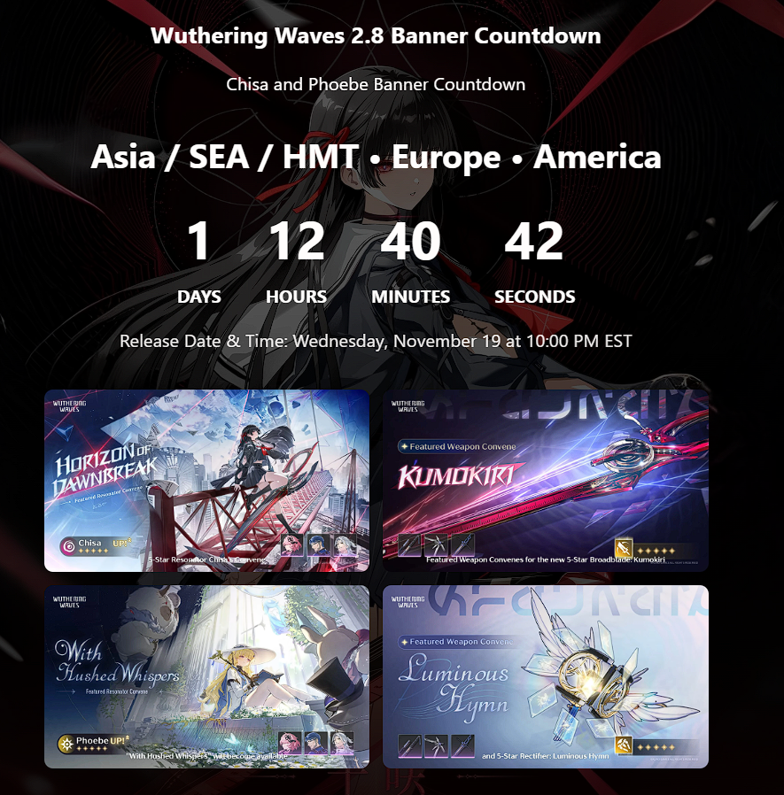 Download (Android/iOS/EGS/Windows)https://wutheringwaves.kurogames.com/en/#mainhttps://store.steampowered.com/app/3513350/Wuthering_Waves/> Wuthering Waves Resonator Combat Showcase | Chisahttps://youtu.be/99Gb873nmQ4 >Wuthering Waves | Resonator Showcase | Qiuyuan — MASTERhttps://youtu.be/8o12Z2ejpBc >Wuthering Waves Resonator Combat Showcase | Qiuyuanhttps://youtu.be/eBv-3F8GiWk >Wuthering Waves Version 2.8 Official Trailer | To the City Set in Amberhttps://youtu.be/MtbA32Wdviw >Map:https://wuthering-waves-map.appsample.com/>Convene Trackerhttps://wuwatracker.com>EventsWHEN IN DOUBT, CHECK: https://wuwatracker.com/timeline[Lament Recon: Solaris Soldier Combat Event] [Oct11 - Nov 18]>Timeline, Rewards and Media Contentshttps://rentry.org/wuwavgv2>Emoteshttps://drive.google.com/drive/folders/1GY6YgPhhOsxN2oW0AbIywdO9Z1_OFe6Khttps://files.catbox.moe/49buge.zip>/wuwa/ Friends Listhttps://docs.google.com/spreadsheets/d/1MzulbsusjOWpaFg6o6kk3TvCWfFYi6EF7NyJXqIazGo>NEWS/EVENTS (and patch notes)https://wutheringwaves.kurogames.com/en/main/news/detail/3310https://wutheringwaves.kurogames.com/en/main/news/detail/3295Previous: >>546789484