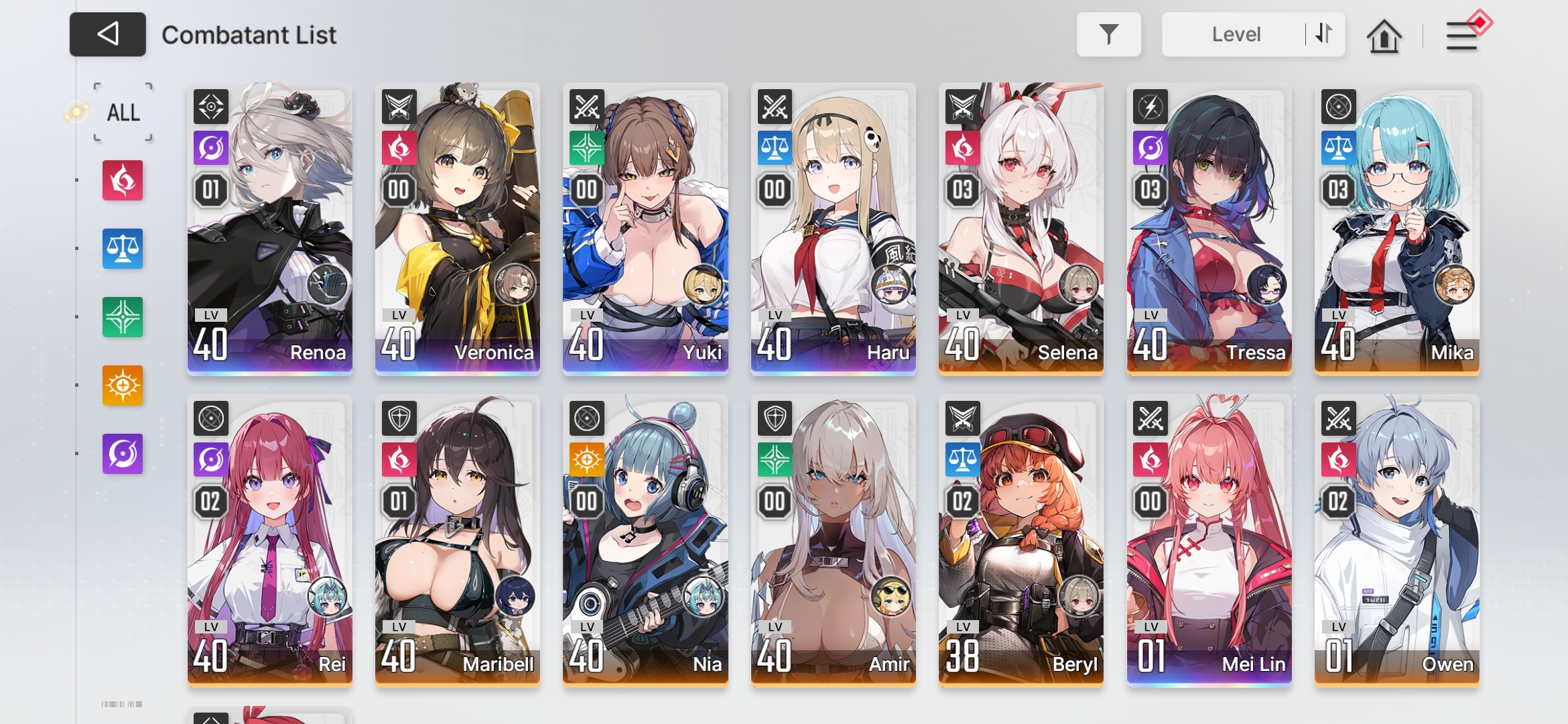 That involves levelling two new units and I'm wary about levelling Rei over Nia, who I think has more general use potential. Are there any teams at a similar level using more of my already levelled characters?