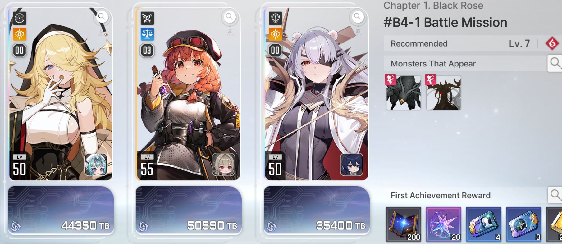 >Orlea, Rin, Tressa, Yuki, Maribell level 50