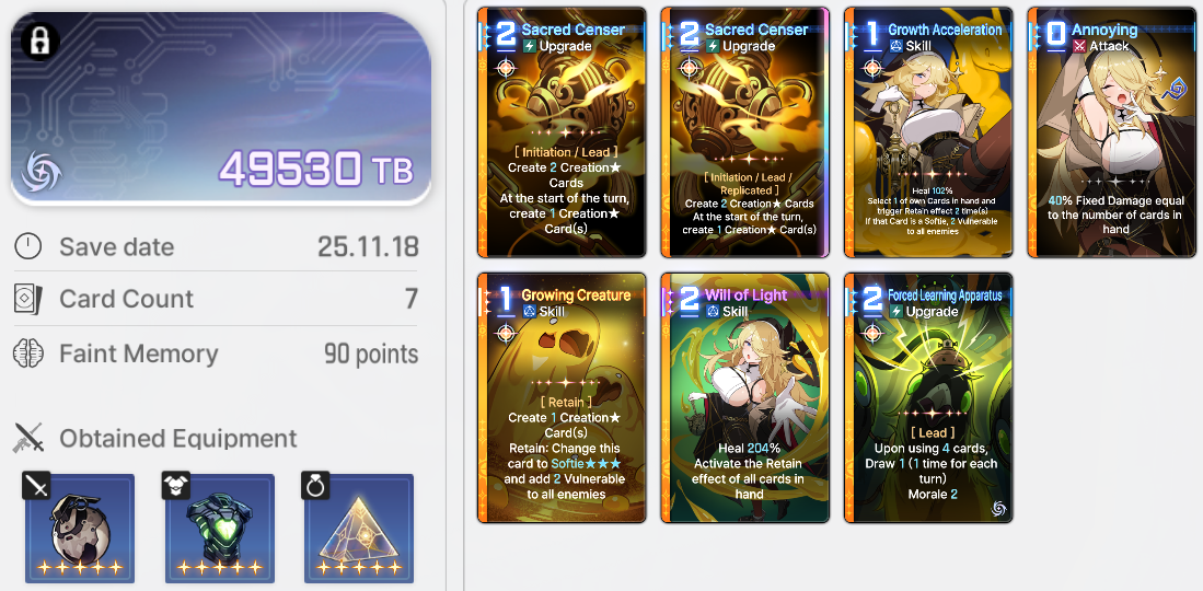 or maybe it’s equipment damage being calculated when the card is in your hand?. a 5* weapon gives around 90 raw damage, which is pretty much 10% of Tressa’s ATK. would that make any sense?