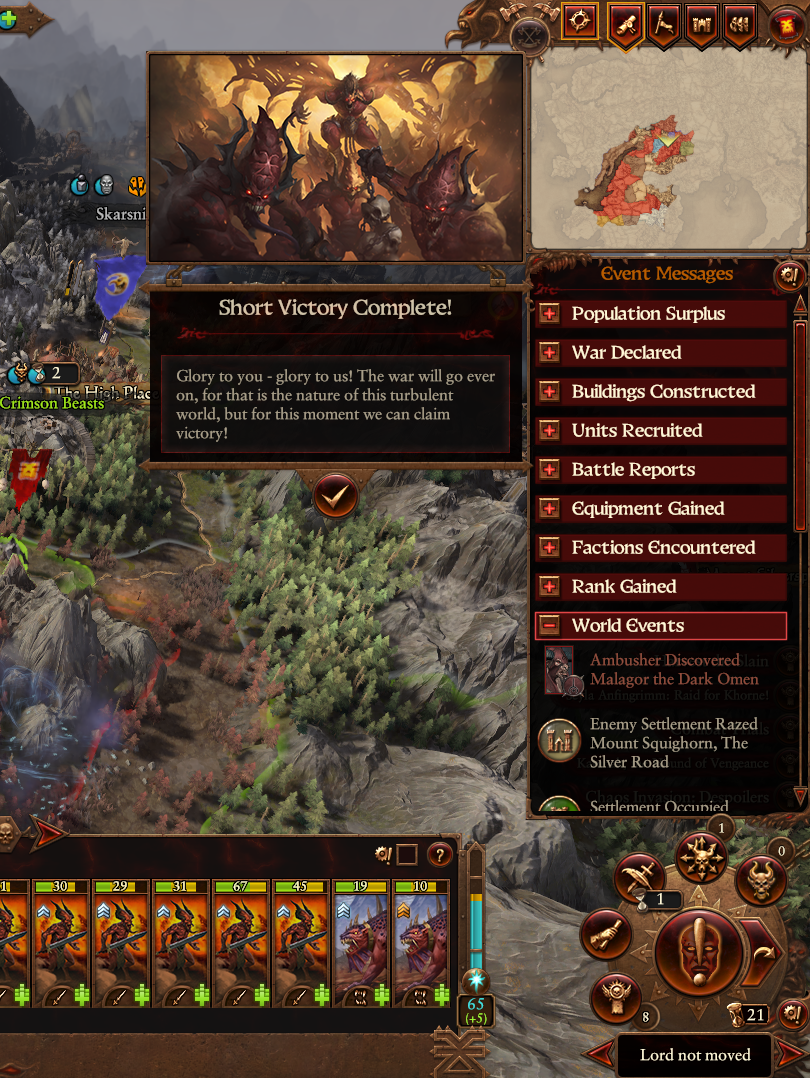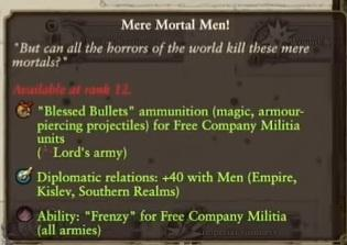 >Louen LeoncouerI've never liked expanding into Empire lands as him, doesn't feel right.I'd like it if his faction had the ability to resurrect any order-aligned faction. Imagine purging the Empire of Norscans or Vampire Counts or Ulthuan of Dark Elves and handing those places back to their rightful owners. Maybe resurrecting previously-destroyed order factions could give you better trade deals with them or a small amount of income every turn like vassals do, to show that they are grateful to you for liberating them.