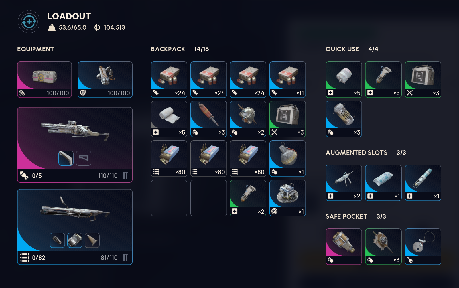The blue looter augment is just the best one to use early game.>huge loot capacity>most runs are uneventful and the loot storage lets you make bank on average >anything of any true value gets shoved up your ass.>if a nigger mugs you, then they only loot generic pile of crafting junk#63588317.