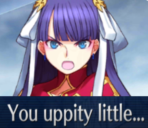 >>546959352>>546959574If I die and I go to Heaven and I wake up in Chaldea, then the first thing I’m doing is finding Medb and beating her with the flat of my sword.