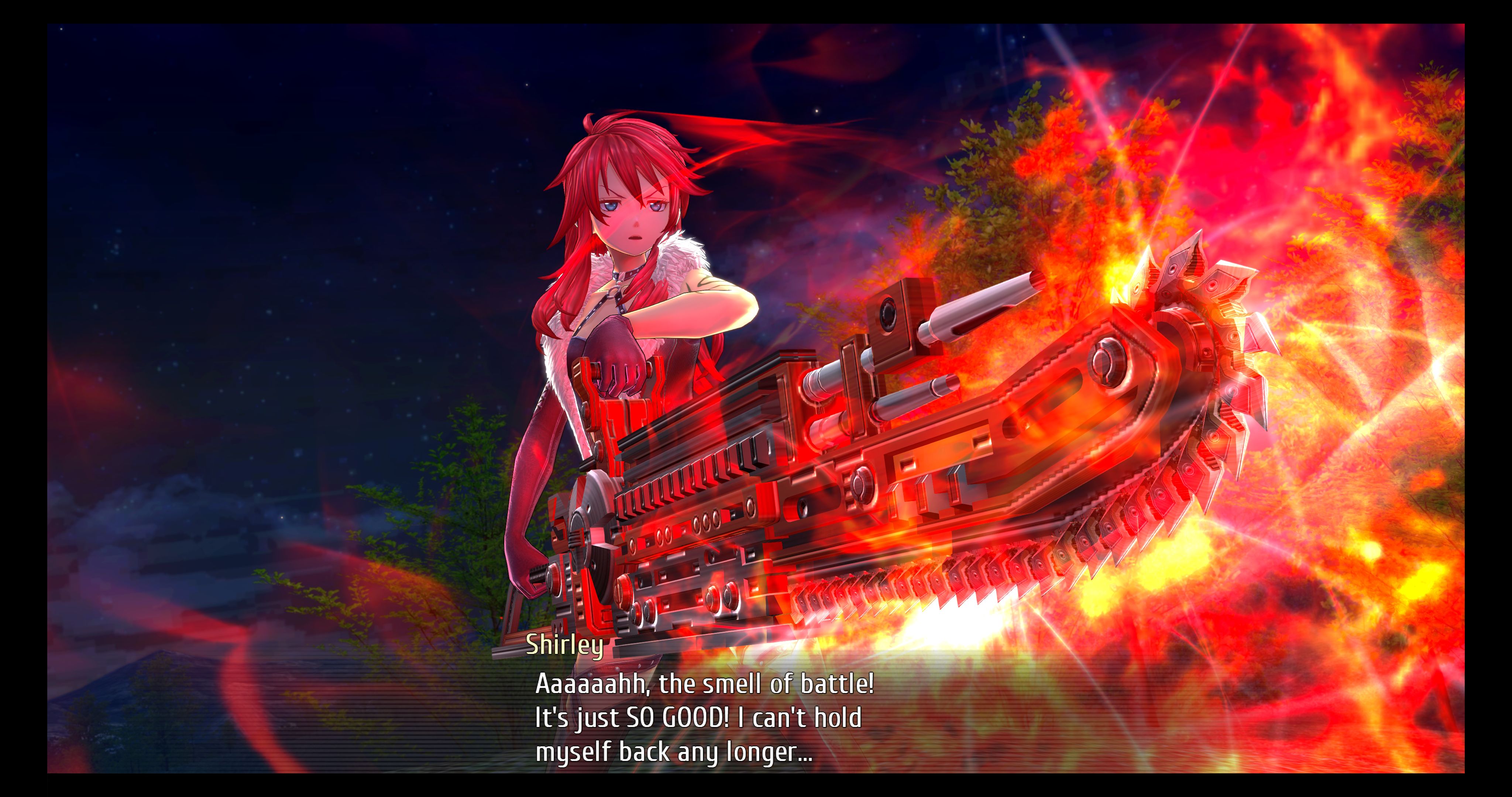 Final Trails boss is a mentally broken loser who thinks he’s a vampire hunter any everybody else is a vampire. he kills everyone, including all major characters, until only you and he are alive in Zemuria. Final game is open world; you run around in Zemuria trying to stay alive and kill the bastards. Imagine running through a forest at night and suddenly there’s a crazy voice: PREPARE TO MEET YOUR END, SATAN!!