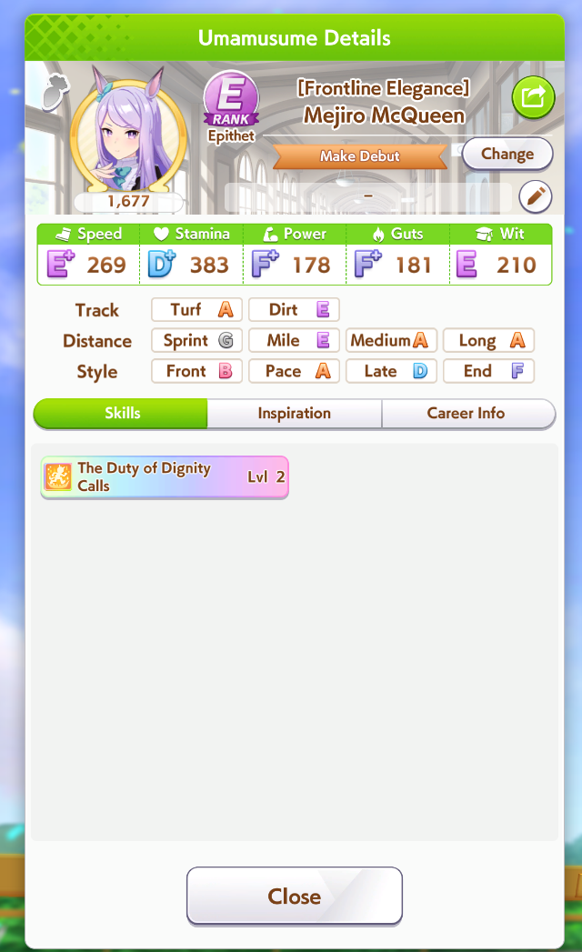 >>546988252>20% parent rateKys humblebragging luckshitter16 daiwa runs 0 useful parents except one had 2*sta 2*long (ofc with mile grandparents) and 8 useless white skills.