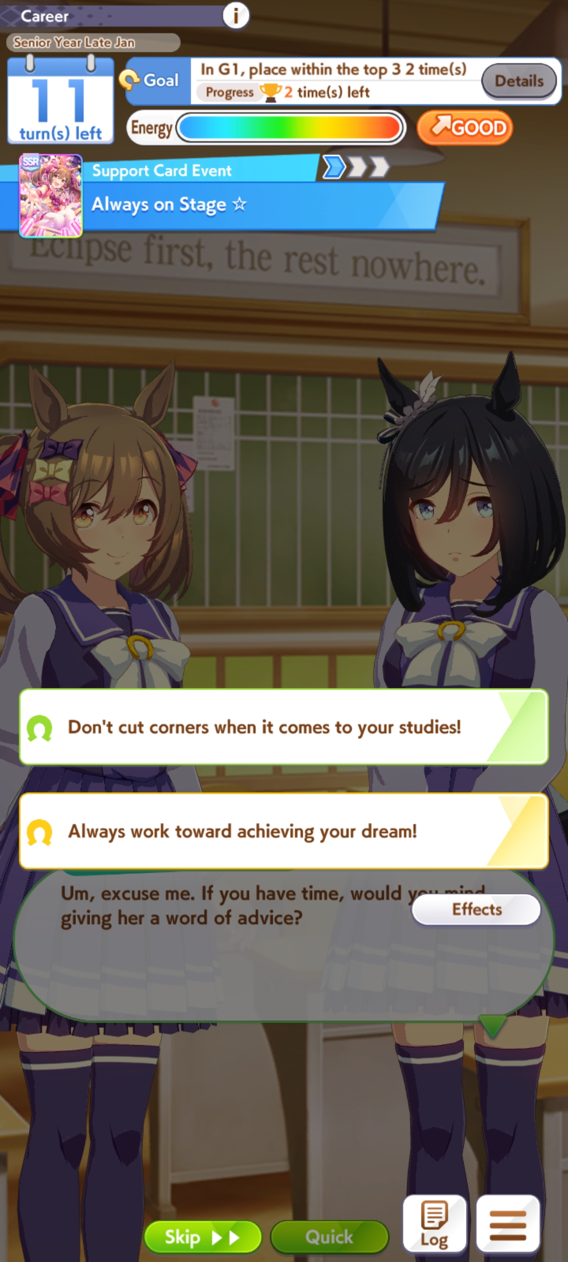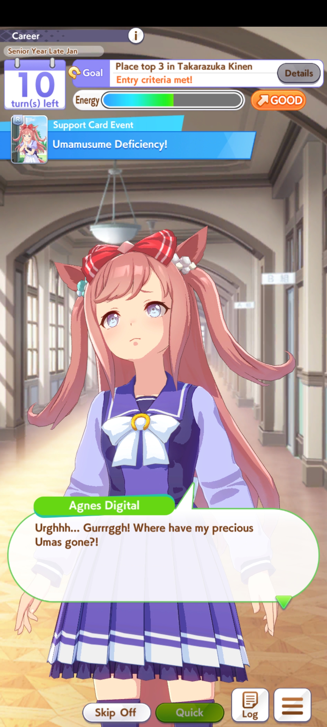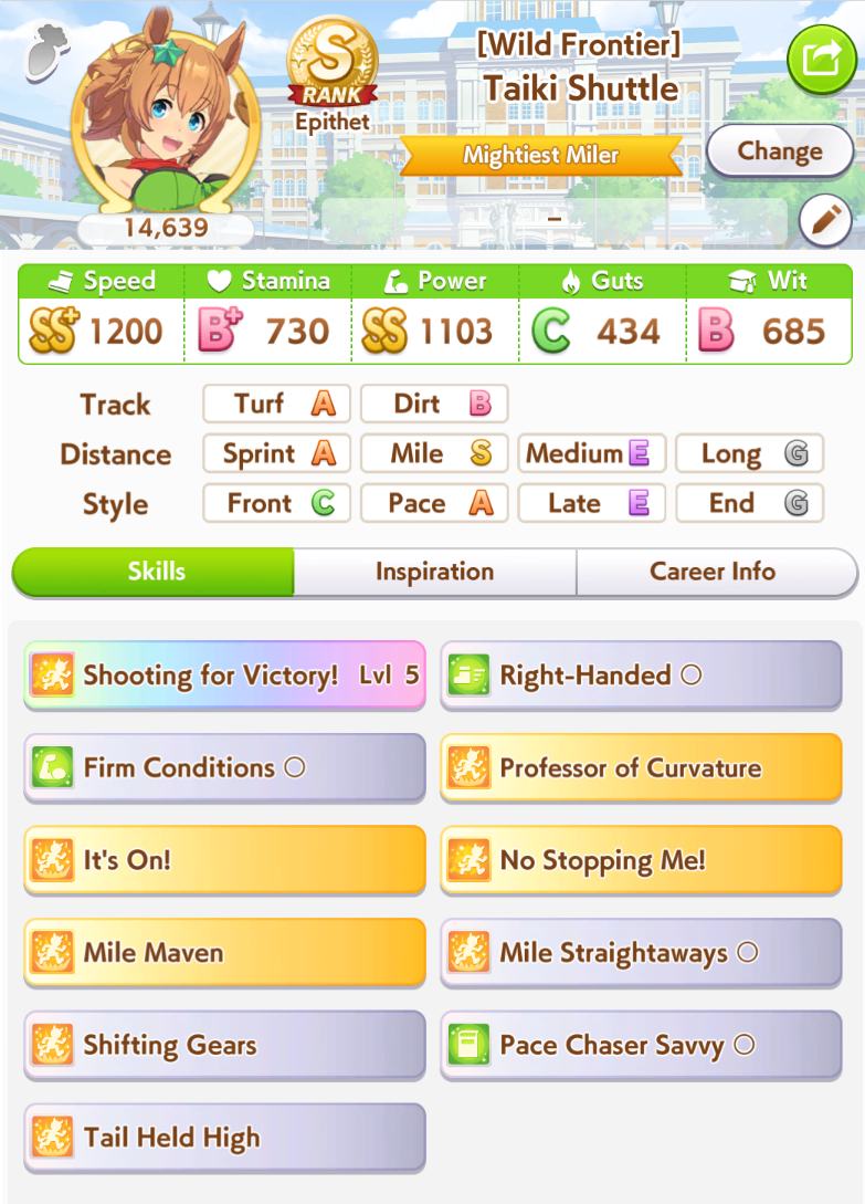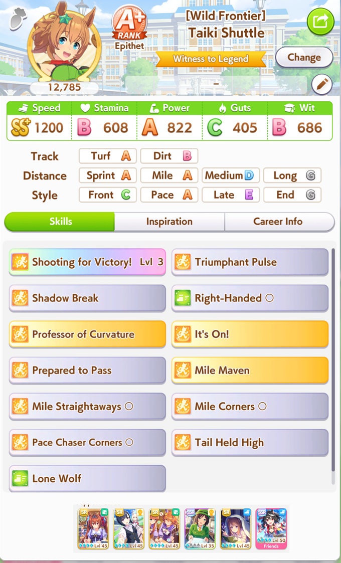 My Taikis all seem to run into the same problem: lack of guts. At some point mid senior year I hurriedly shore up guts and end the career as a powerlet. Would swapping a pal card for MLB Ulala mitigate that problem? I don't have MLB Kita or any usable Rikos so my options are very limited.