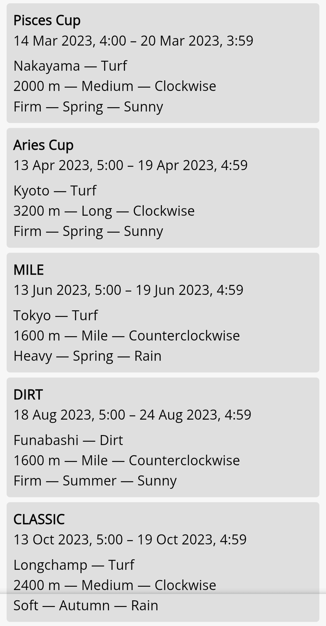 Why do some races only appear once?Like Hopeful Stakes or Satsuki Sho or the Japanese Derby?