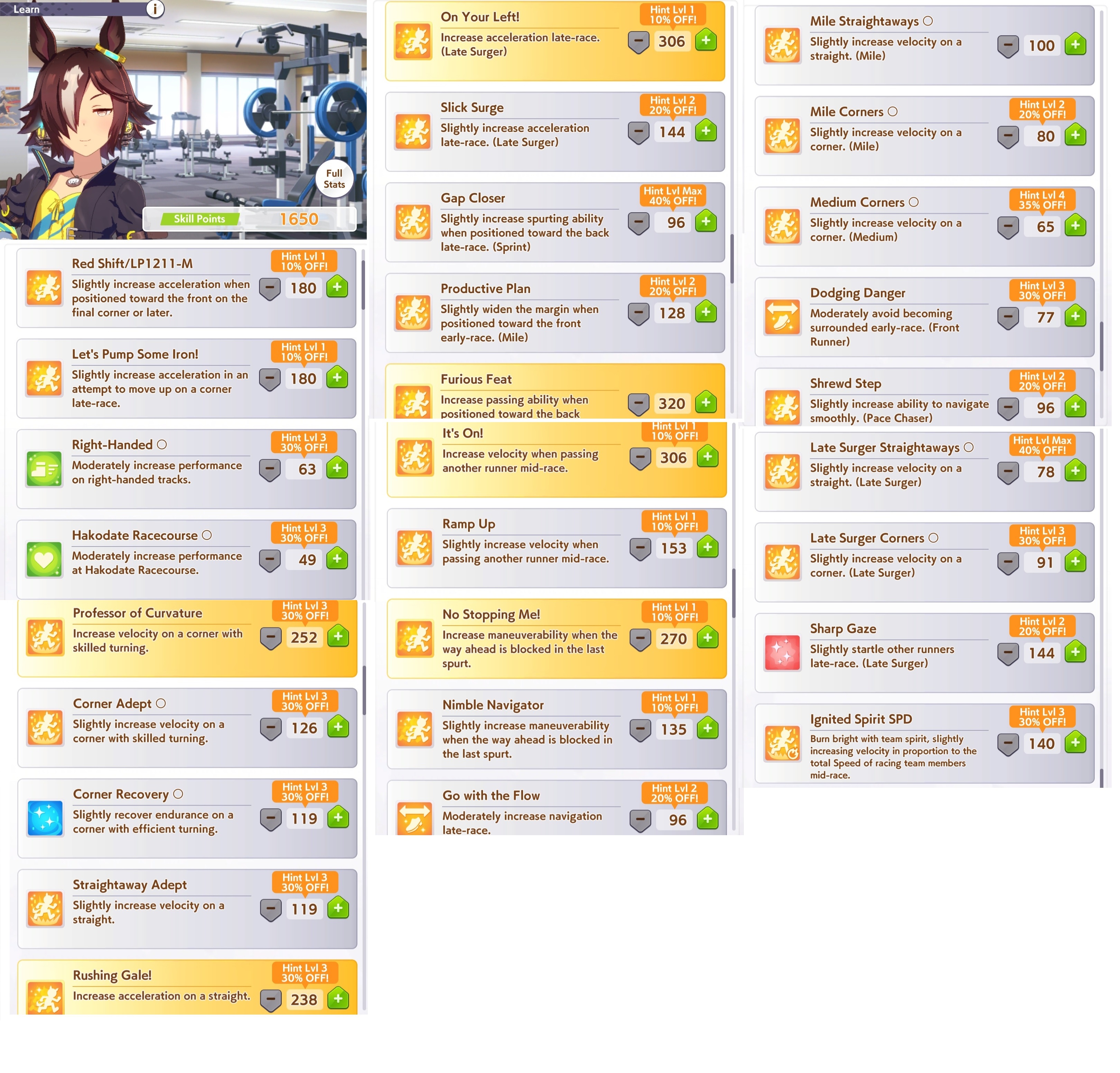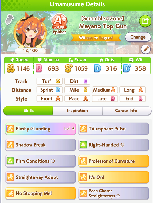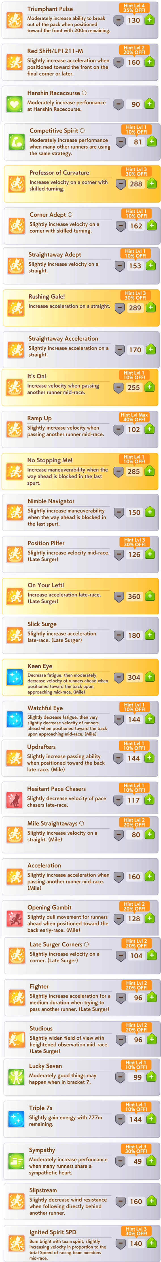 >>547016428>>547016614Good point, missing THH. Mainly targeting late surgers, only spurt for ends just in case I get lucky. Would love my own Yaeno, but alas. Maybe Tazuna (R) could work, like to pick up Focus too when I can.