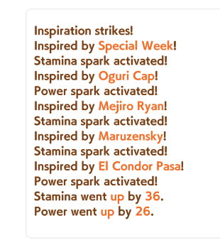 >Acceleration>Slightly increase acceleration when passing another runner> mid-race. (Mile)>look inside>it's actually late race