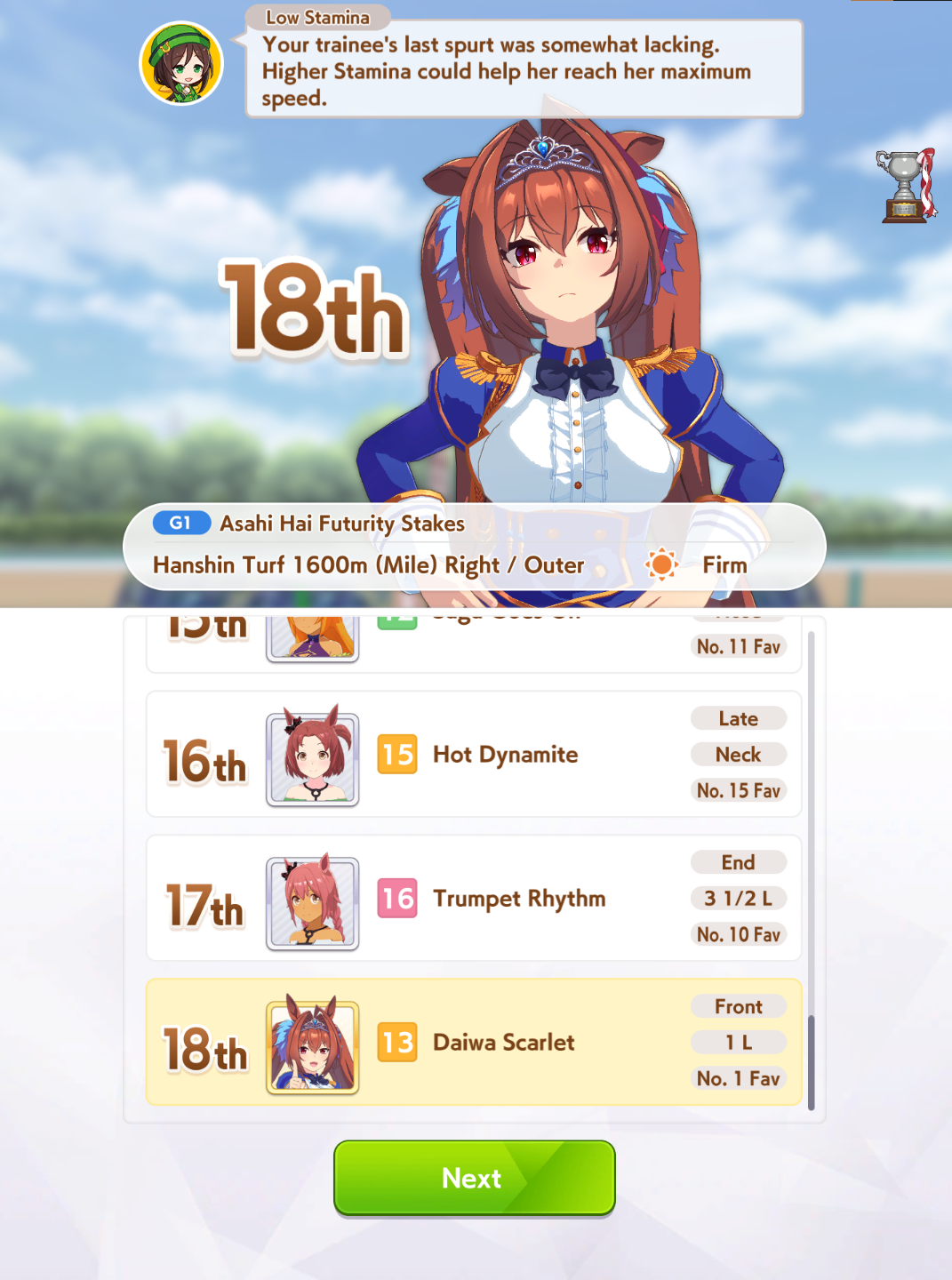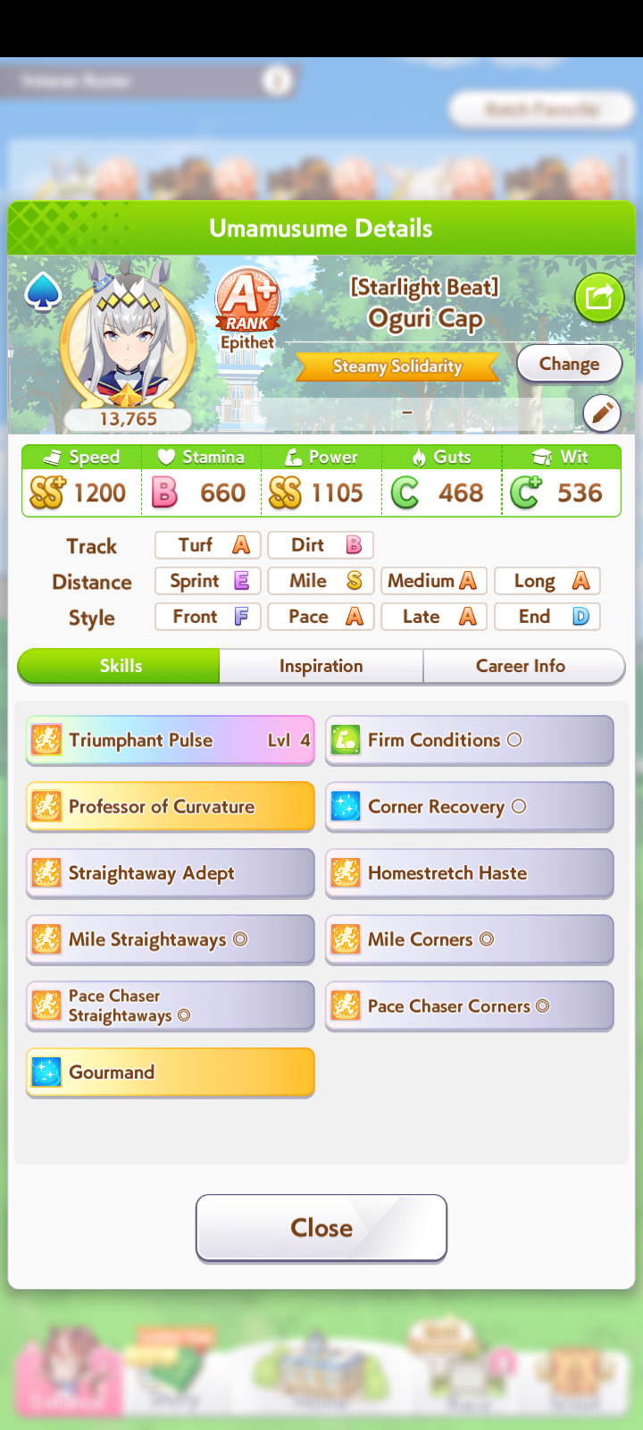 Why the fuck is my end closer starting 8/9th and ending 6-9th? Stats look fine. Is it lack of uma stan / red shift? I honestly have no idea. I'll post the image in a bit