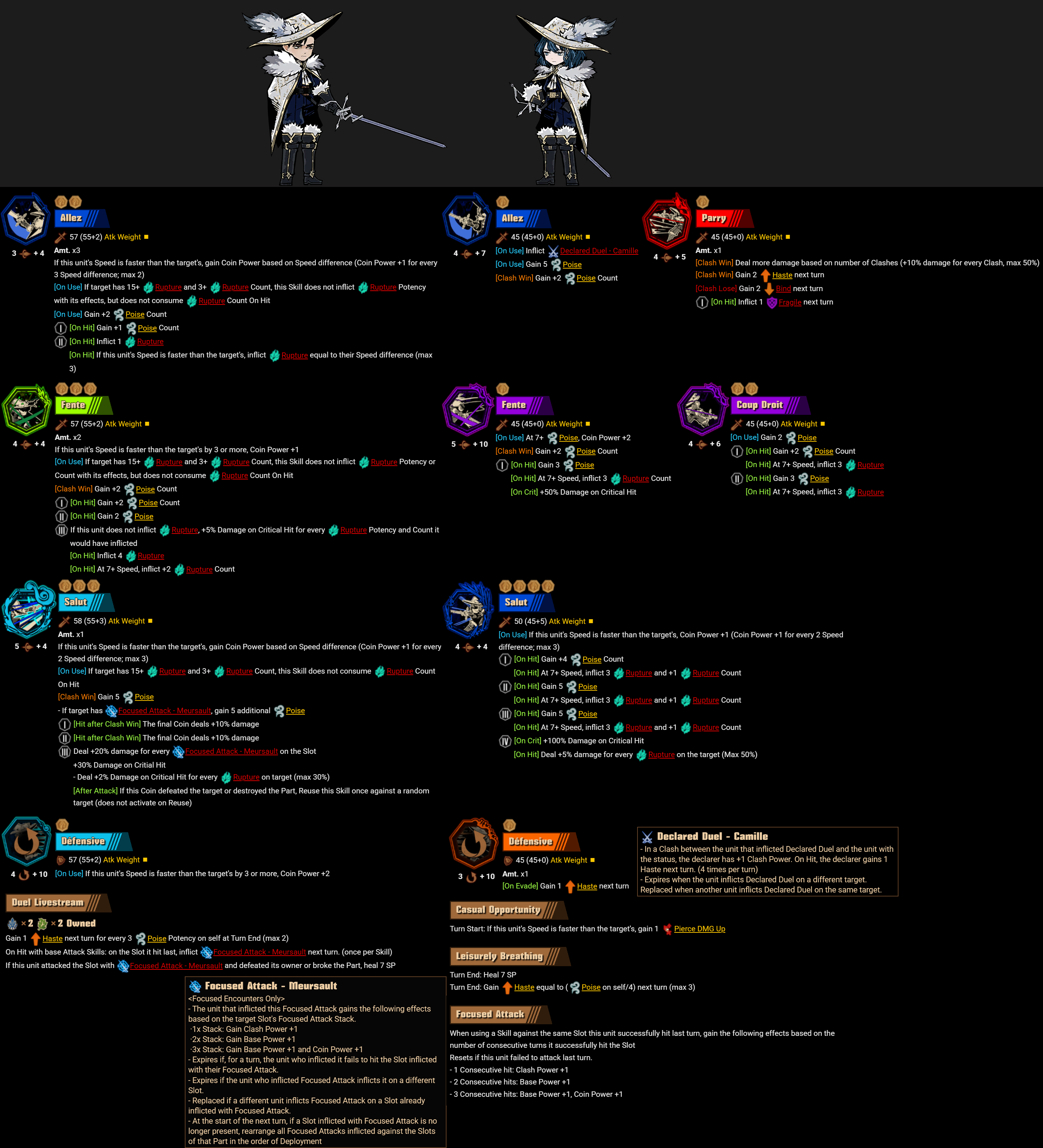 Cinq West Meursault and later Cinq East showed us that each Cinq section is going to have its own versions of Declared Duel, West in Focused Attack and East in Nerve Strike.So it's interesting that Camille got both. A Declared Duel status, and Focus Strike in the form of a passive. I imagine Cinqsault had to have been made later even if he released Canto 7's launch patch, so Camille was probably made before they decided West's thing would be Focused Attack. But he has that passive still. Was Camille always going to have both? Did someone decide at some point Focus Attack should be West's thing and Camille having Declared Duel became a leftover oddity? Is there a chicken and the egg situation happening somewhere here? How curious.