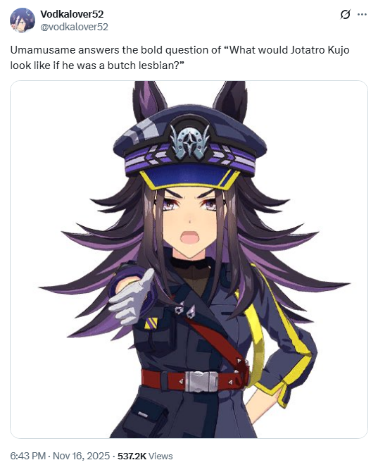 >>547017857Twitterfags are usually retarded and that one is extra retarded but lets not pretend Umamasume doesn't have gay umas.
