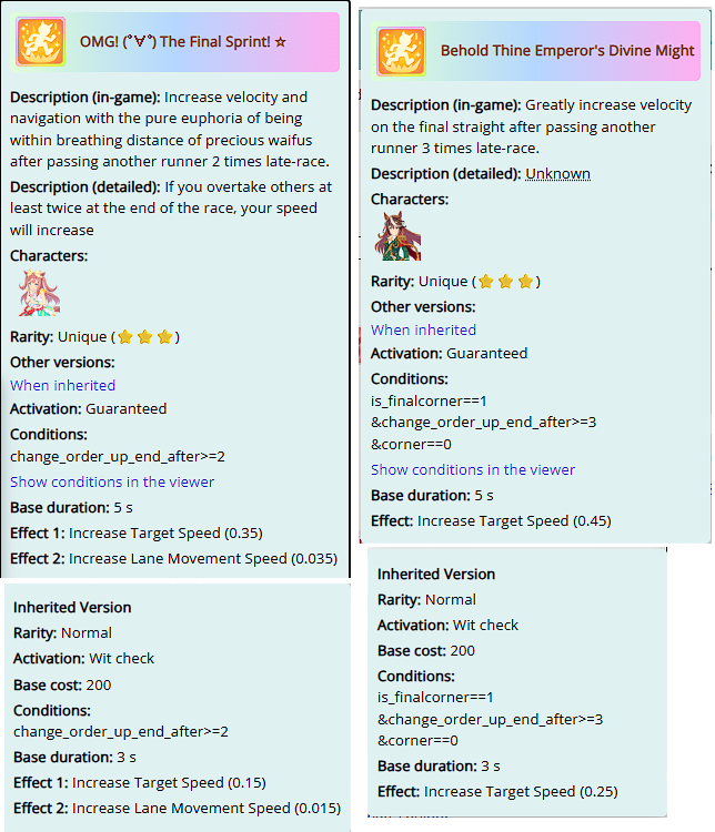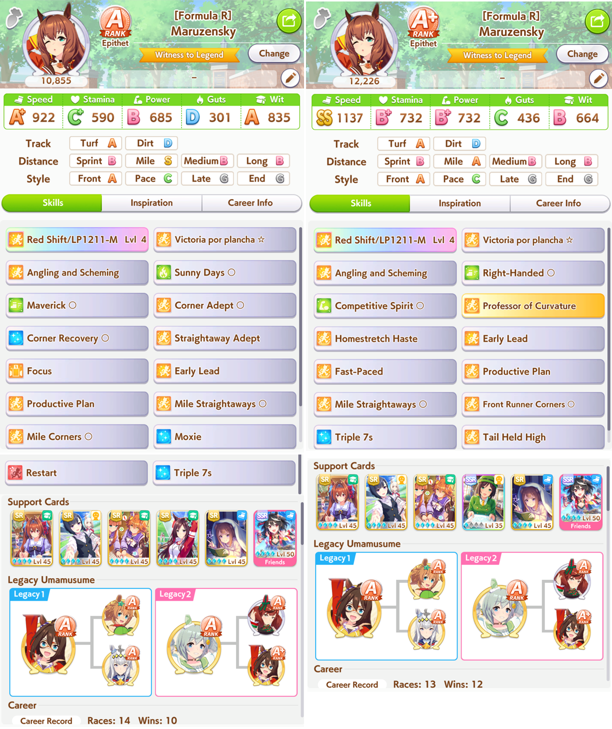 >>547039628Even if these were parent runs your skills are wrong on the right, but it seems like you start to understand skillswise what you need on the left. Both of these umas are bad, don't get me wrong, but you need to plan before tha career what exactly you want on an uma.
