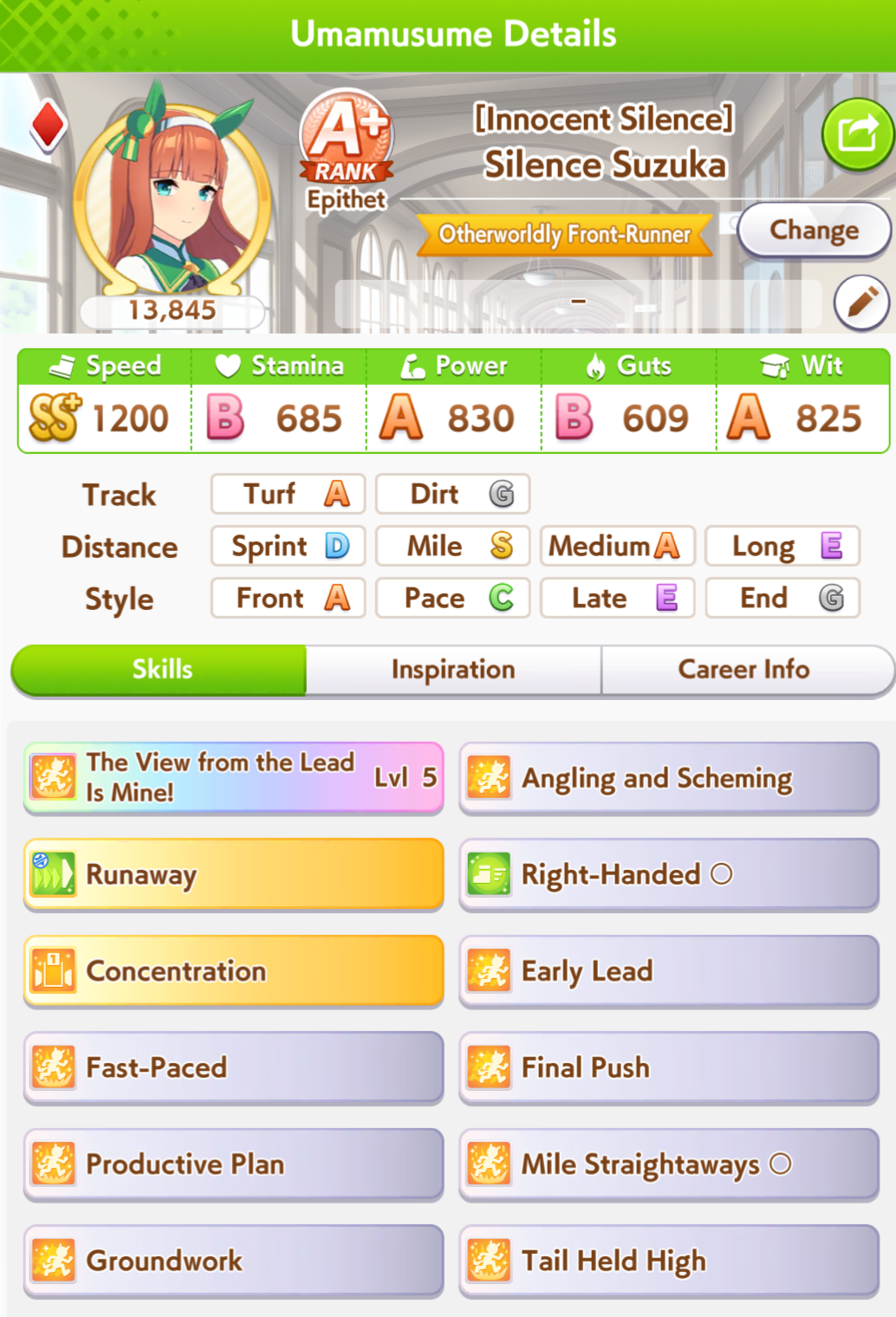 Has anyone tried building a Runaway Silence Suzuka for Sprint TTs yet? How much Stamina would you need for her to survive?