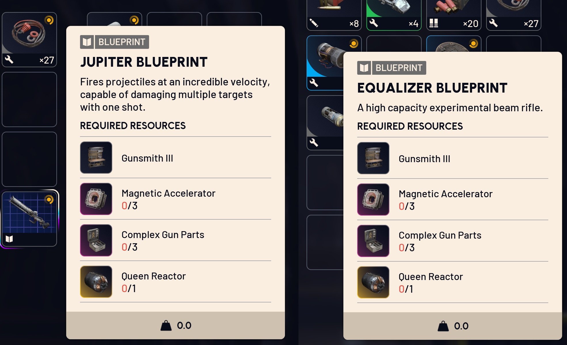 >turn in X amount of item Y to receive its blueprinty/n