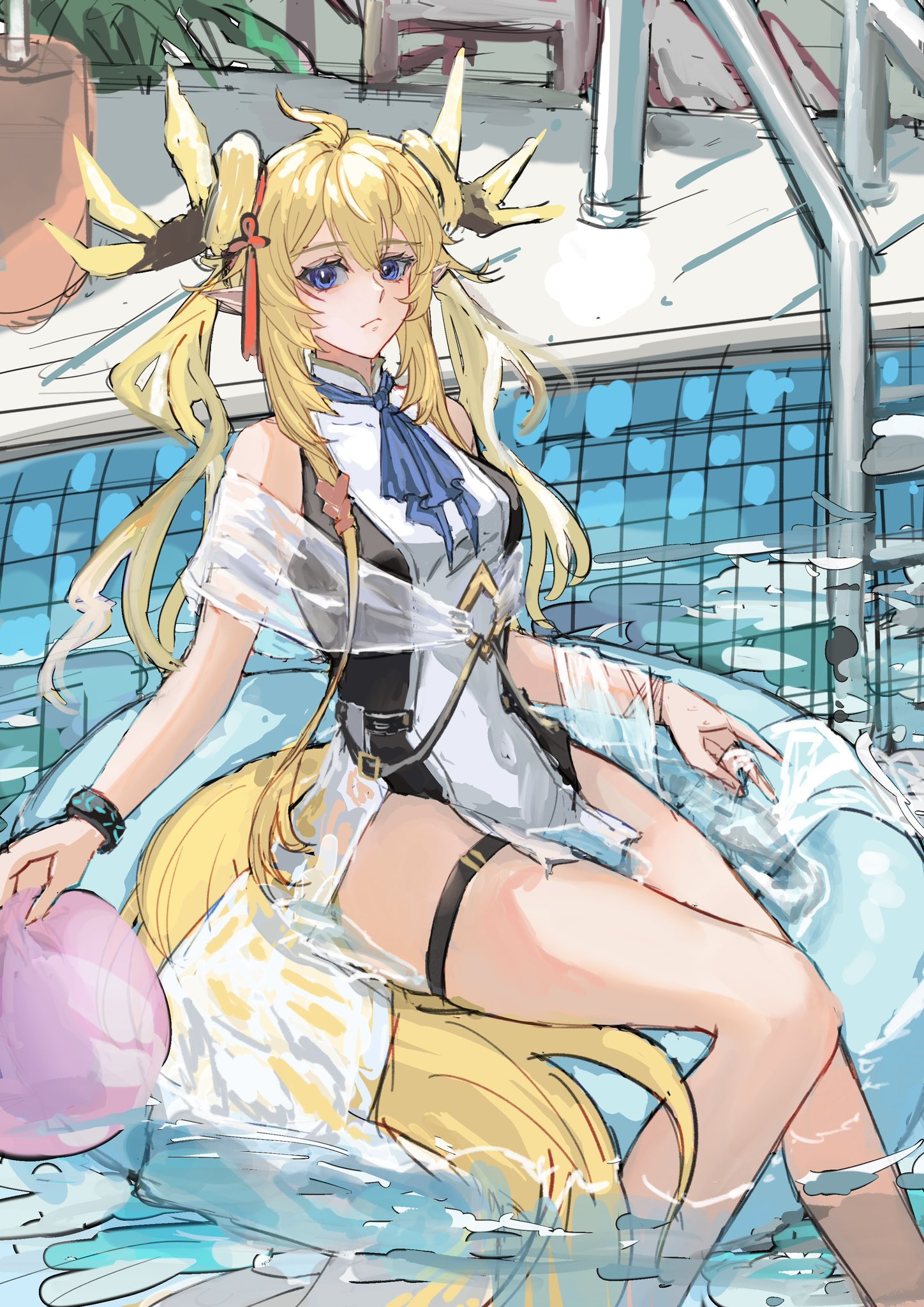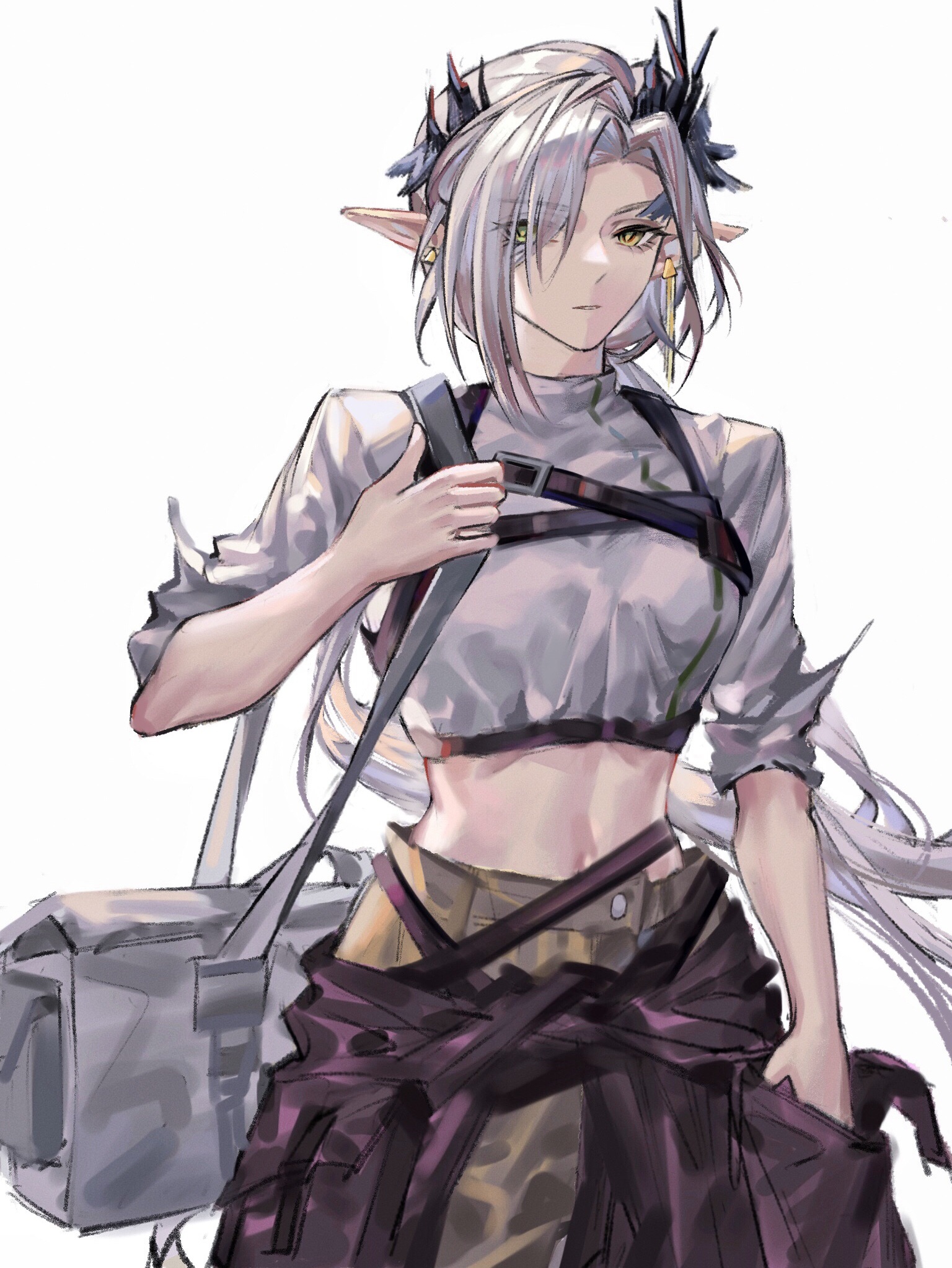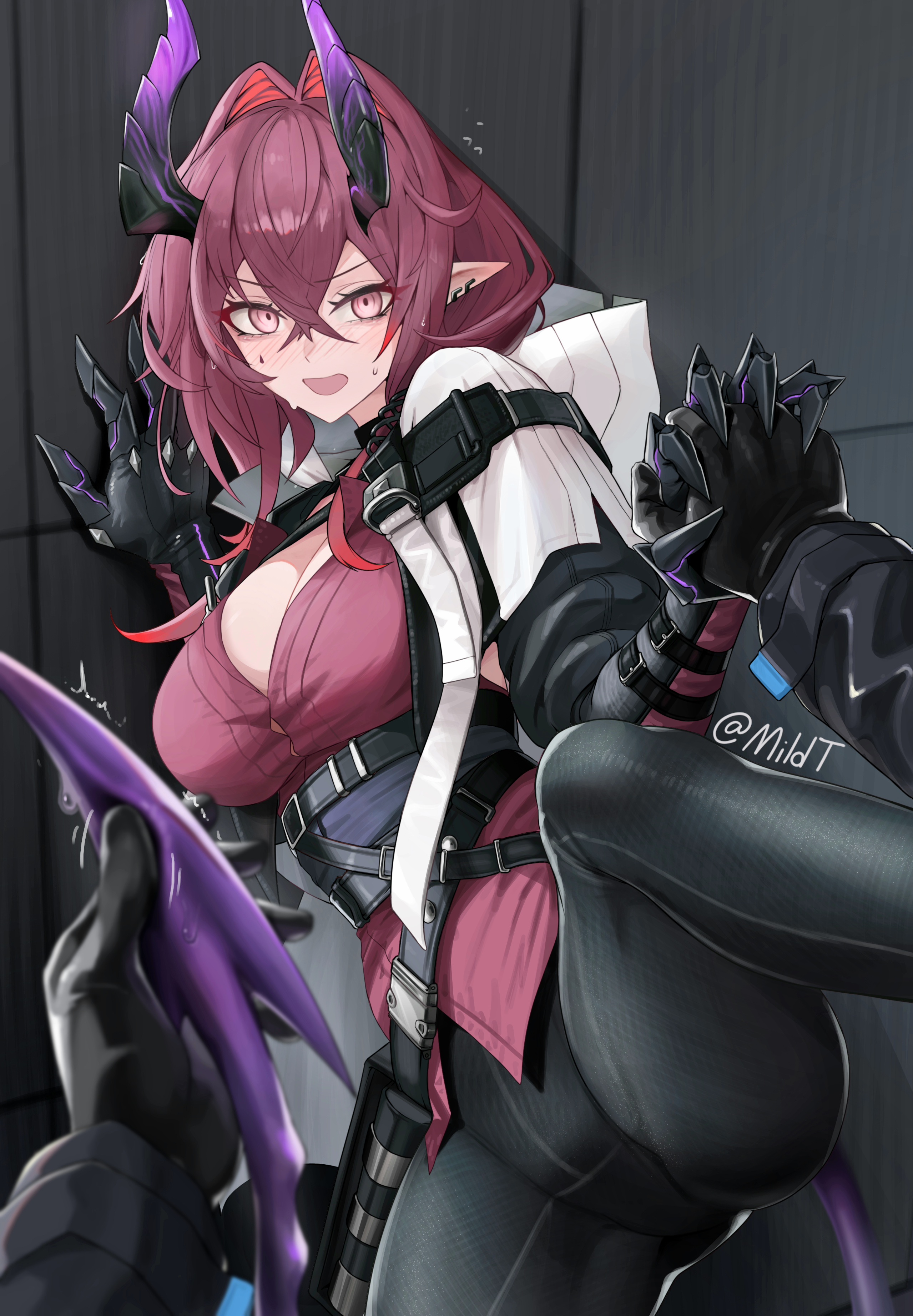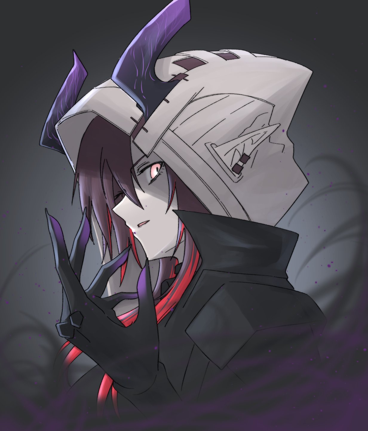 Even in Amiya's design you can see the cyan blue being used to separate the two colors. Her hair's reflection also takes a lighter, more purple tone because of the contrast necessary.