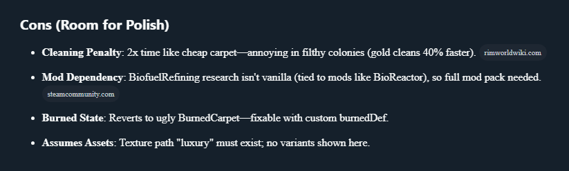 I don't use oskarslop after I wanted to have a way to feed my animals on sea ice with a paste dispenser; and while all I wanted was some way to be able to get paste at will to put in their food containers, it added a bunch of pipes and other shit I didn't care, and mostly didn't even work properly, then later I found a simple mod which added a button to get paste from the machine whenever I wanted (instead of waiting for pawns to get hungry); or having to install all that roman bloat if I wanted to build some roads... never again for me, sorry.