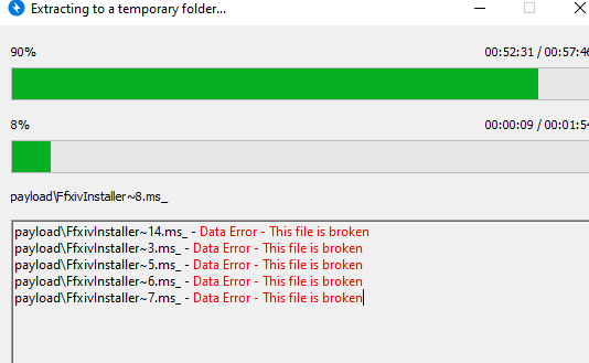 So when I tried to download the entire Dawntrail client in a ZIP archive, several files had failed during unzip even after repairs. I proceeded to install with these partial files anyways. And opening the launcher to update, barely anything new downloaded. Am I cooked? Do I need to redownload all the 84 gbs? I really want to make my character today. On Garuda!