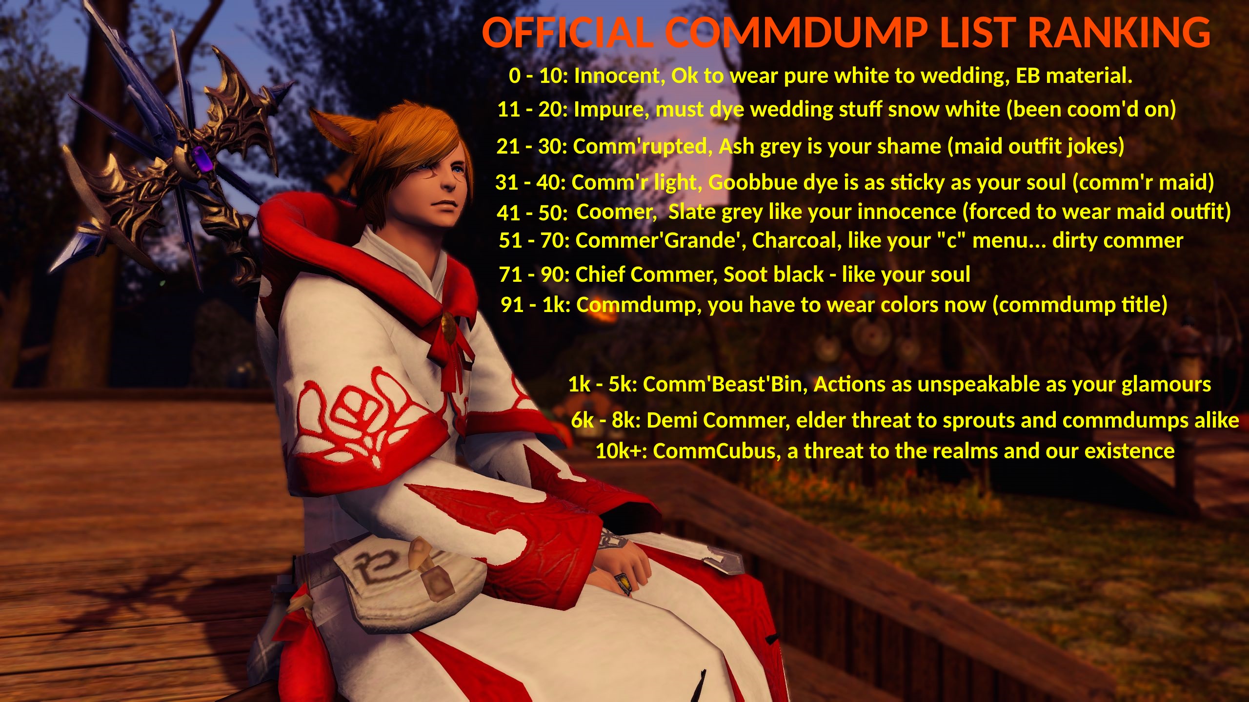 >max auramale veenamale highlander>good auramale helionmale lostmale ravamale midlander>ok auramale seekermale sea wolfmale wildwoodmale keepermale duskwightvoidsent/sin eater rper>bad auramale hellsguardmale dunesfolkmale plainsfolk>skull emojimale xaelamale raengarlean rper