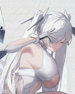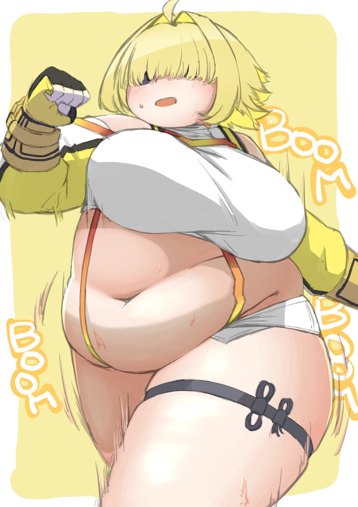nikke with some stacking effect that also causes her breasts to grow bigger with each stack