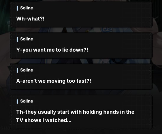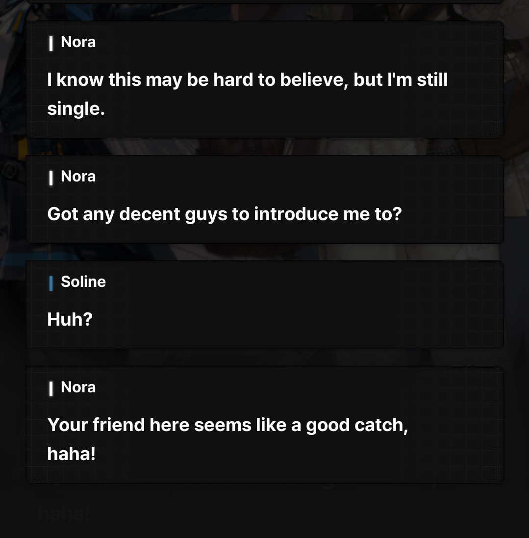 So is Nu Soline's bond really "The commander and Soline go out on a date" cos uhhhh