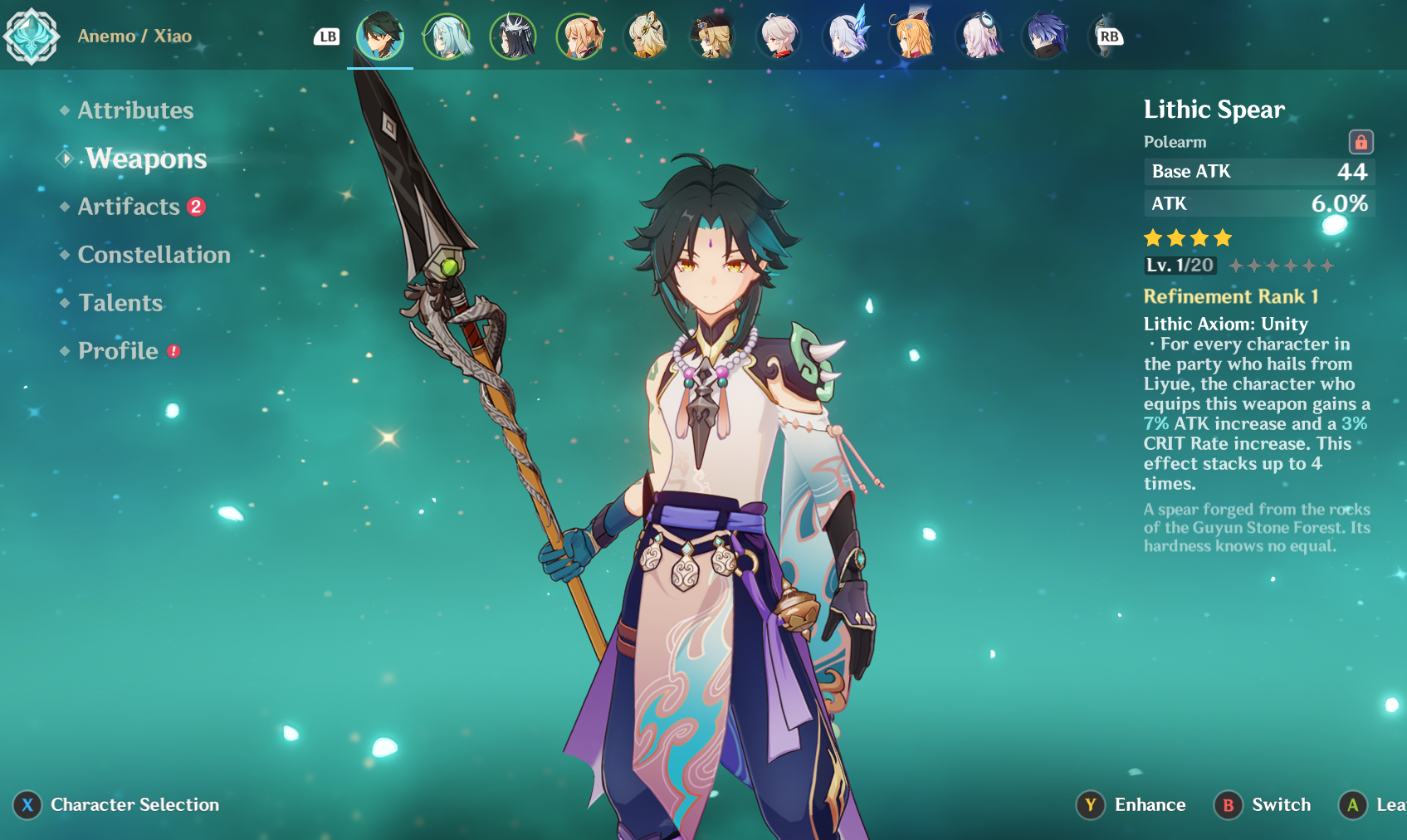 Man, there are literally zero good cope options for this dude as far as weapons go... Lithic would be good, but all of his best teammates aren't from Liyue:/ Plus I only have it at r1. Any XiaoGODS got any advice?
