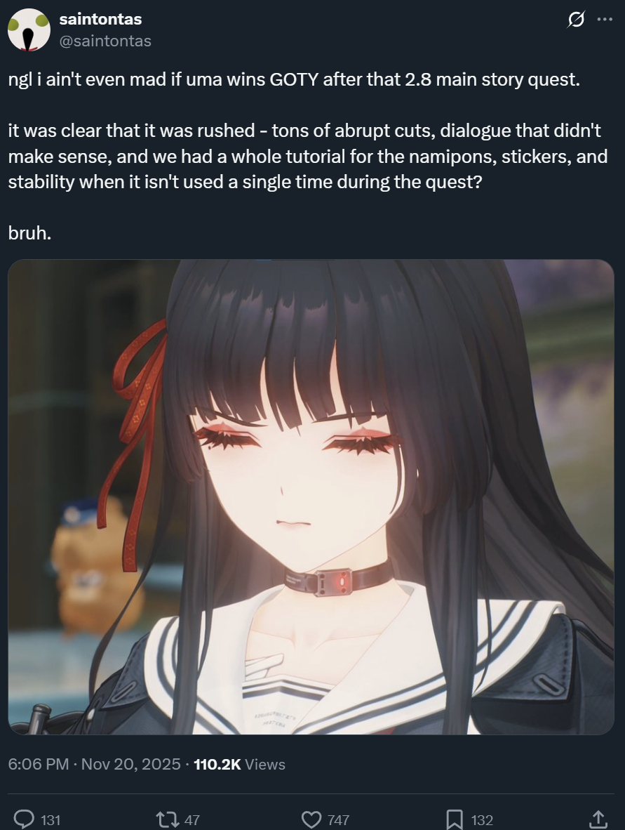 >>547436445>we're all patiently waiting on 3.0's improvementswell i hope you will be right.As a Ex- Honkai Star Rail Player. I was suffering on the latest 2.8 Rappa Banana Batch.My Biggest Copium was "Amphoreus 3.0 will be better, better Storytelling, less yapping". I was so fucking wrong
