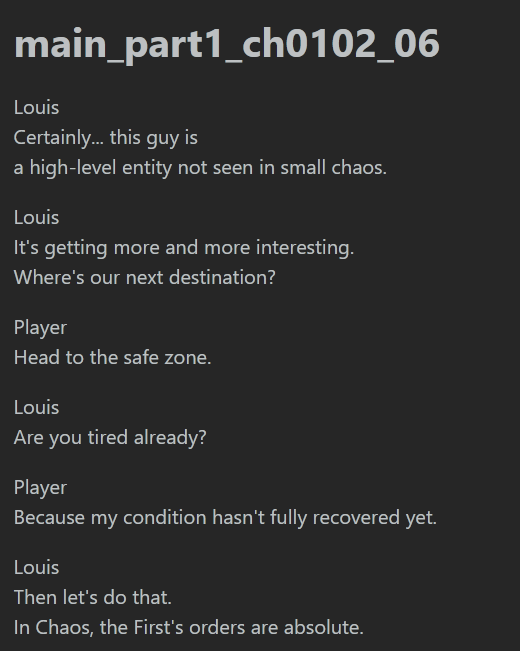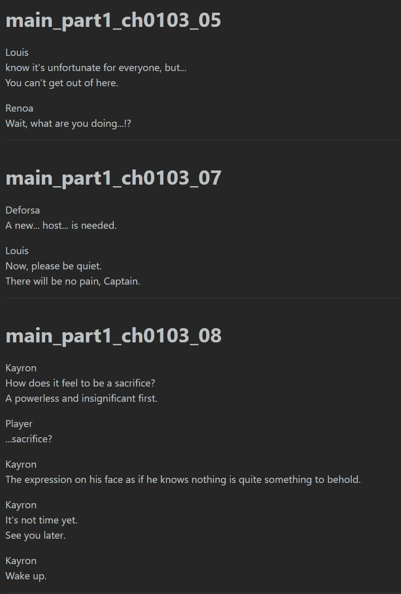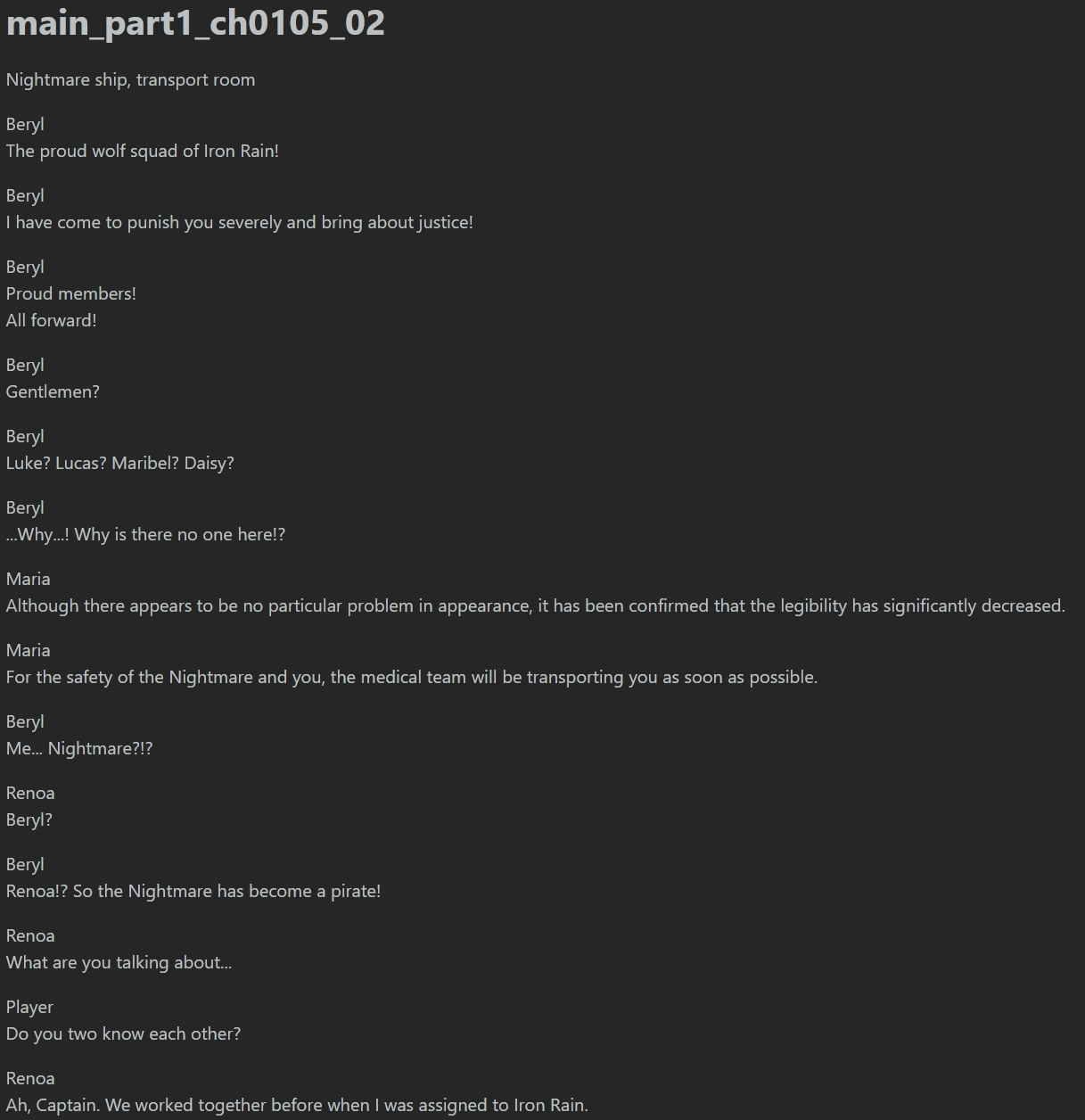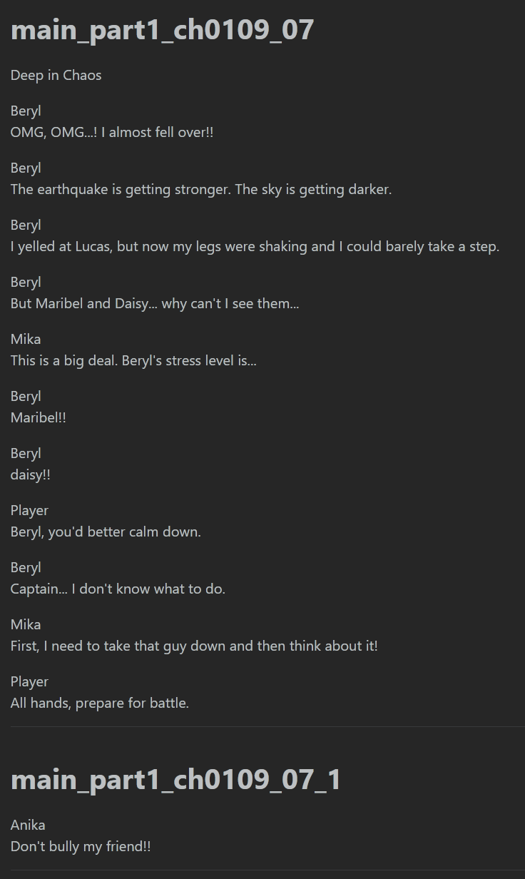 >>547453198Got it straight from the data.pack, under the db file named story_mainAnd that's the end of Beryl's arc. Literally the same thing after all. I wonder why *this* didn't get rewritten