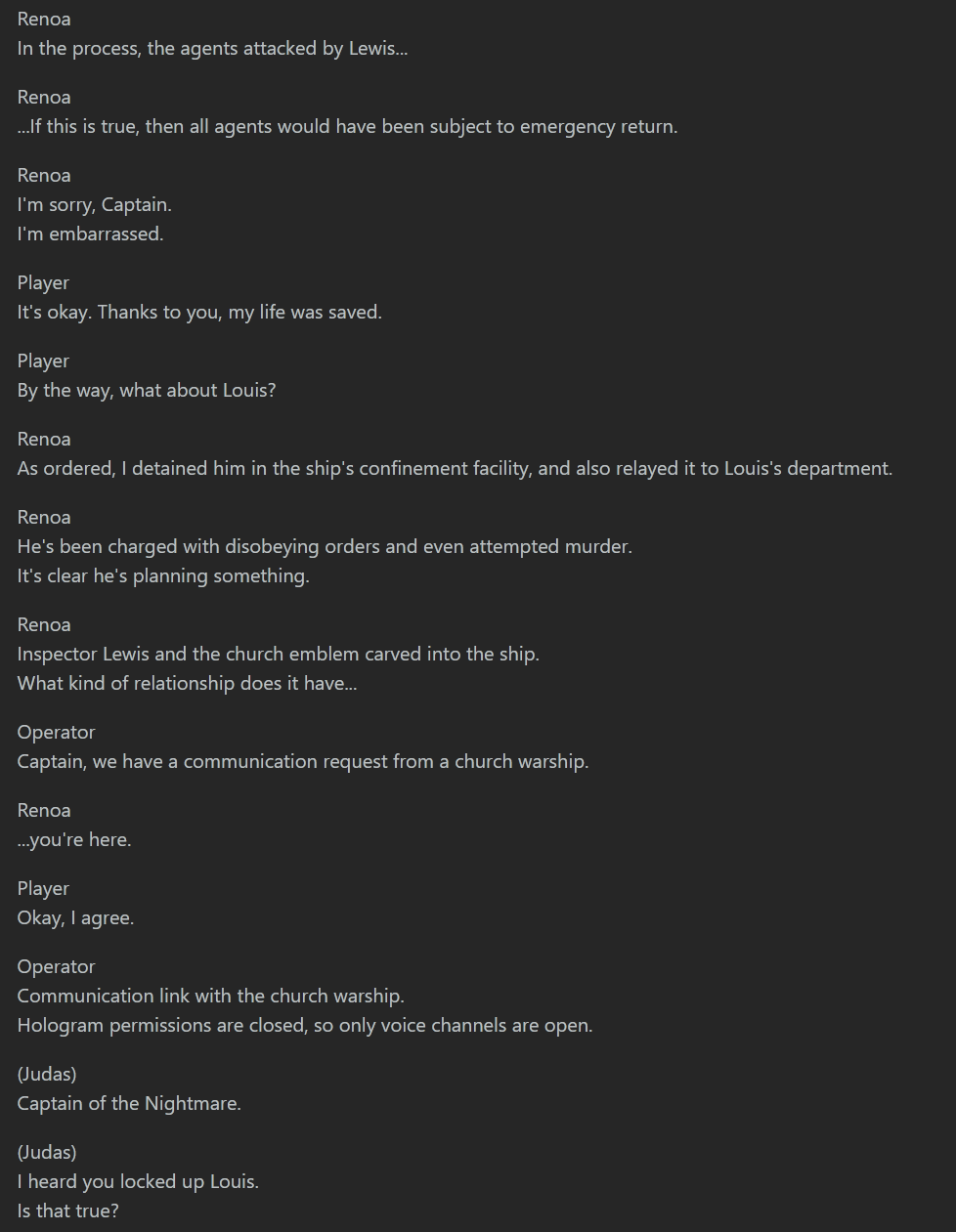 >>547452436Basically same thing as our current story. We open a wormhole and warp away. The difference is that we're an actual Church fugitive now, whereas in the current story we're still neutral to the Church and Judas is crashing out for no reason.Then they meet Beryl. This part of the story is mostly intact. Her past work with Renoa is also mentioned. I think this just further proves the LN writer worked on both Renoa's Trauma Code and this first draft.