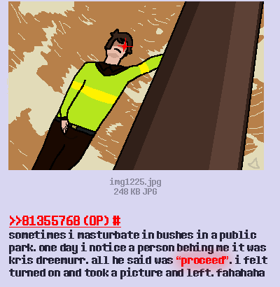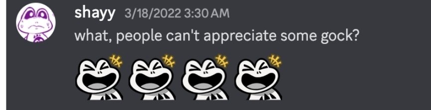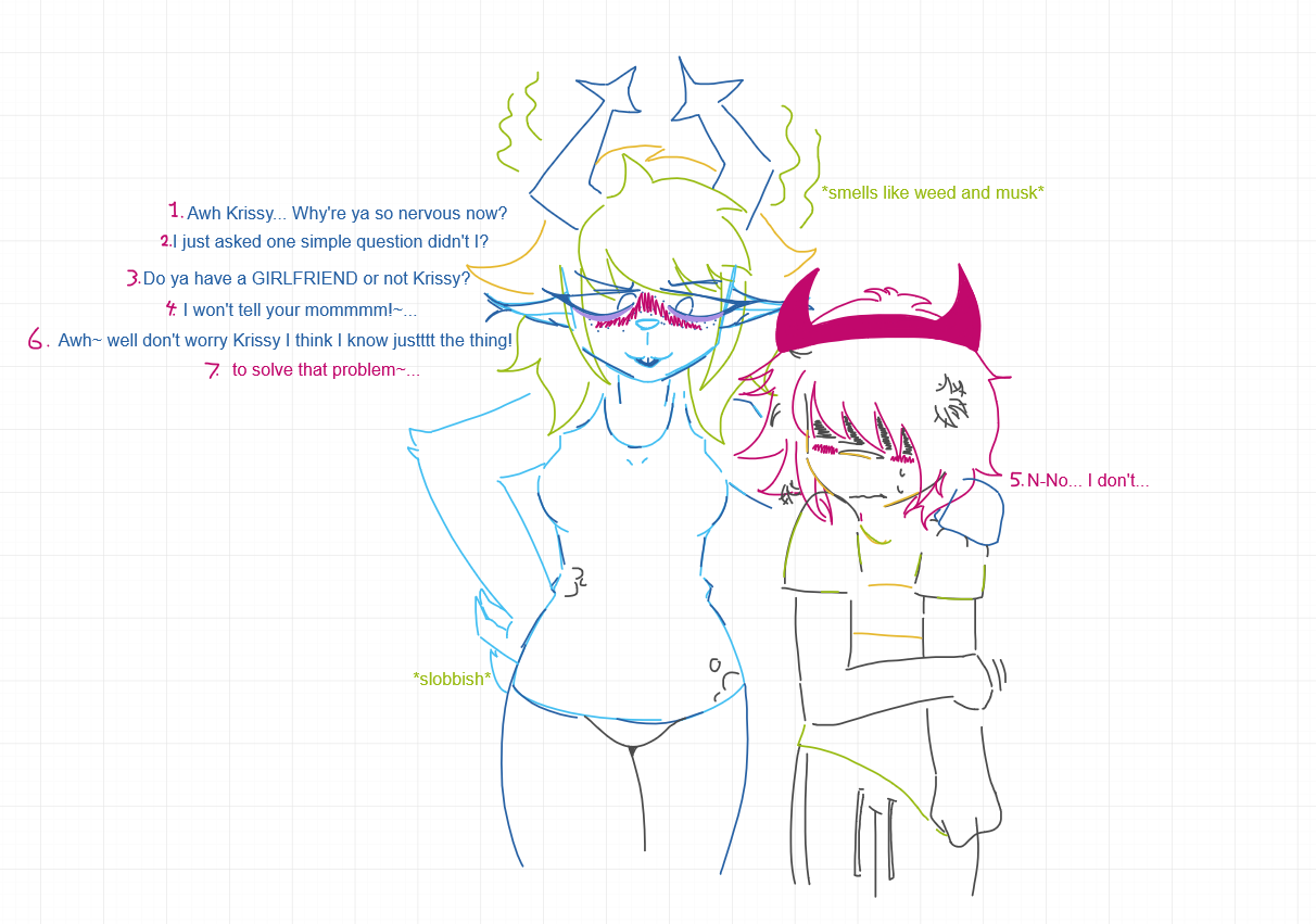 This whole situation, while I don't enjoy victim blaming, says much how this fandom is composed of socially stunted people to a damaging degreeNotice how shayy's victims are so absurdingly lacking in any assertivity, to let a weird guy push unsolicited sexting onto you every single time, imagine DATING a hypersexual guy for years while being asexual and not telling him to fuck off for groping you, or showing your fucking hrt tits to bait him into doing something you just couldn't demand out of him delaying shit he agreed to do. I can understand why the minors involved acted like this but not the adults.Like I'm sorry but behaving like a hopeless deer in the headlights just makes everything worse for you and everyone involved