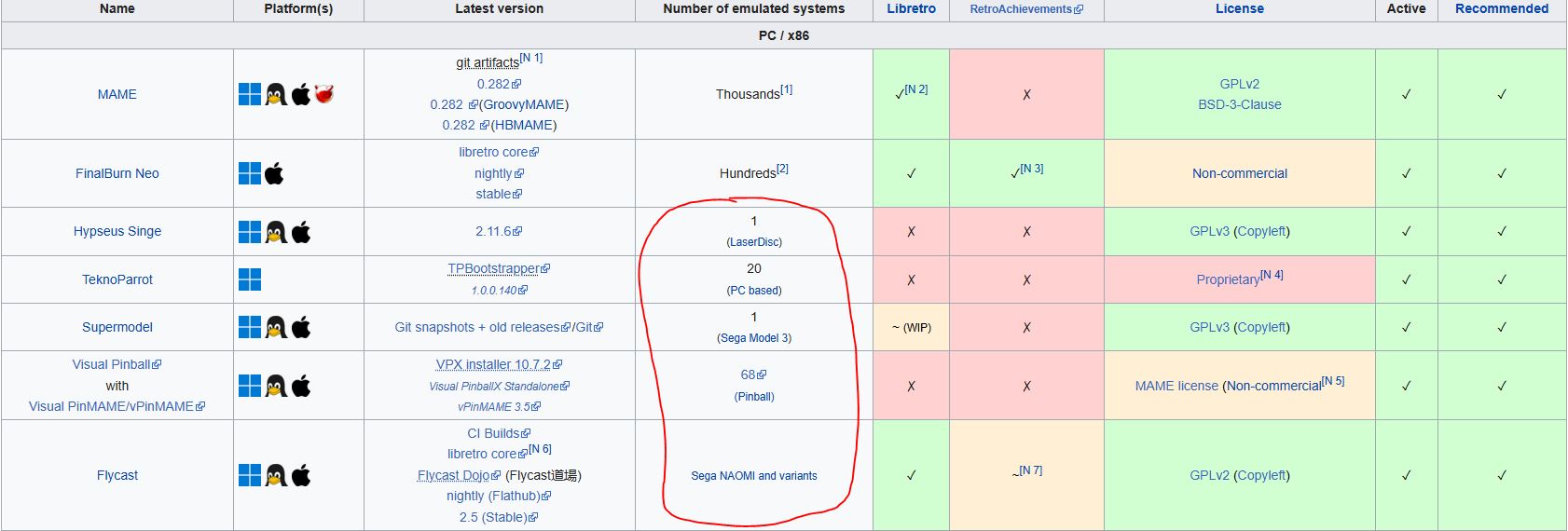 >>547799098>>547799159Basicallly, for everything except the ones I marked in red on that screenshot, use MAME (like NES arcade variants, Jaguar arcade variant/CoJag, arcade original hardware and other 3d arcade systems, other home console-based hardware etc etc). But if FinalBurn Neo supports it, prefer FBN, it's way less performance-intensive and runs smoother on lower-end hardware.