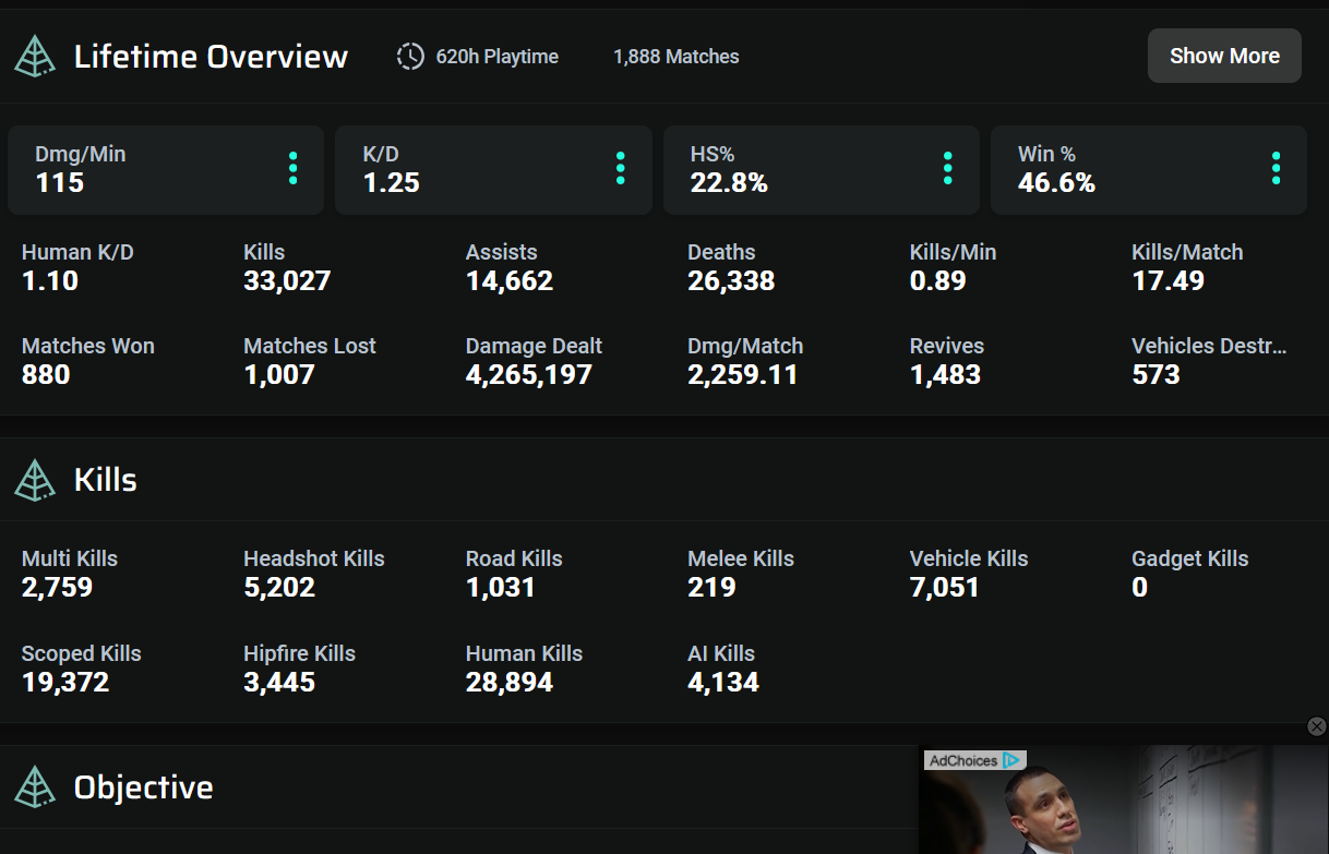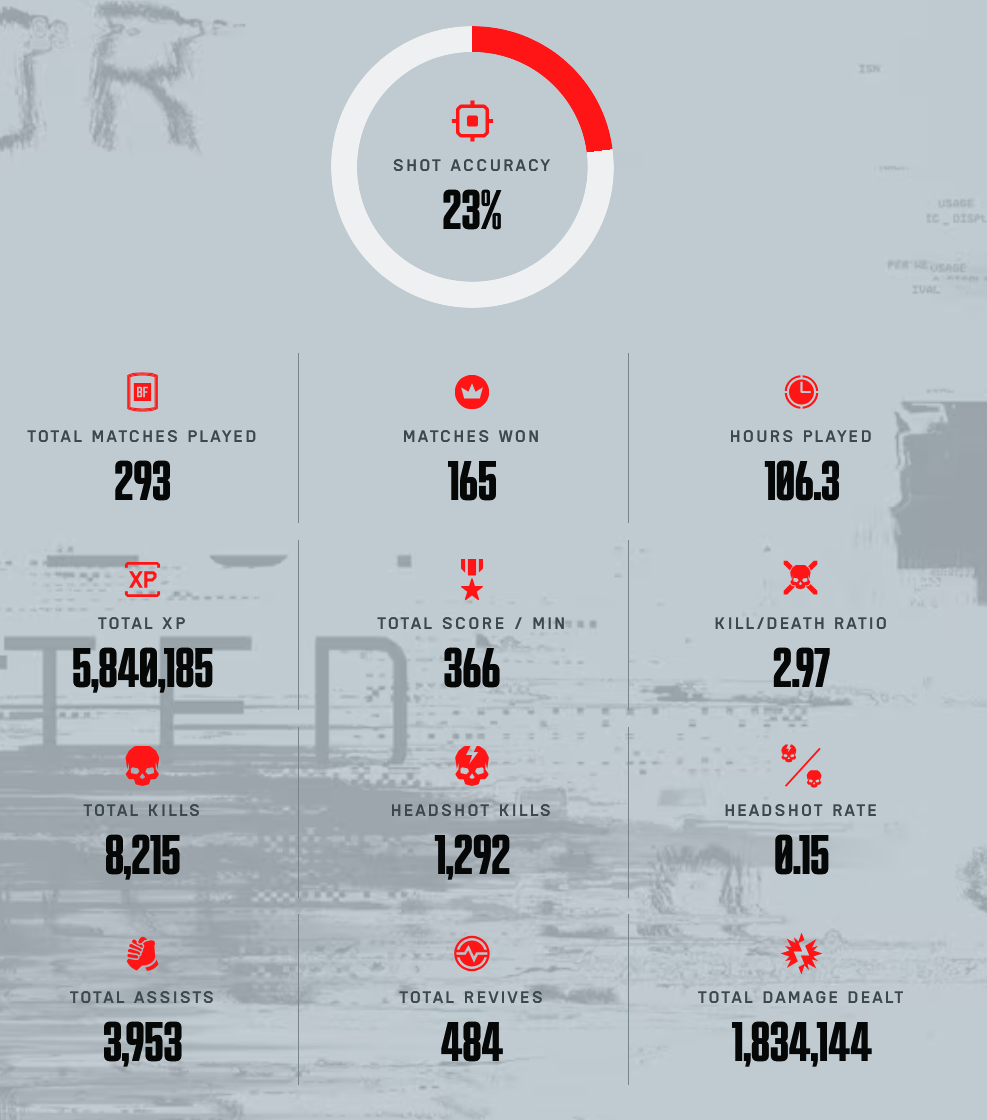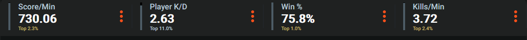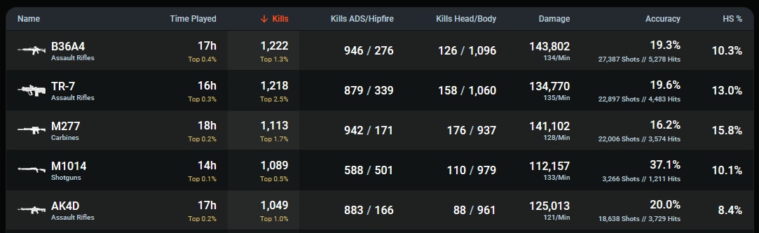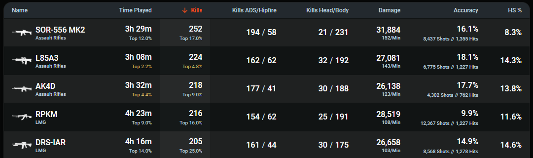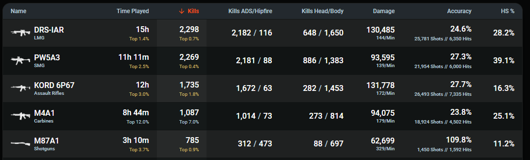 >>547496802Considerably better, it's why I never get along with them. They don't know what they're talking about because they can't play the game properly.But also, these stats don't seem to be right, or haven't been updated. My in-game kill count is over 10k, so this hasn't been updated in weeks.
