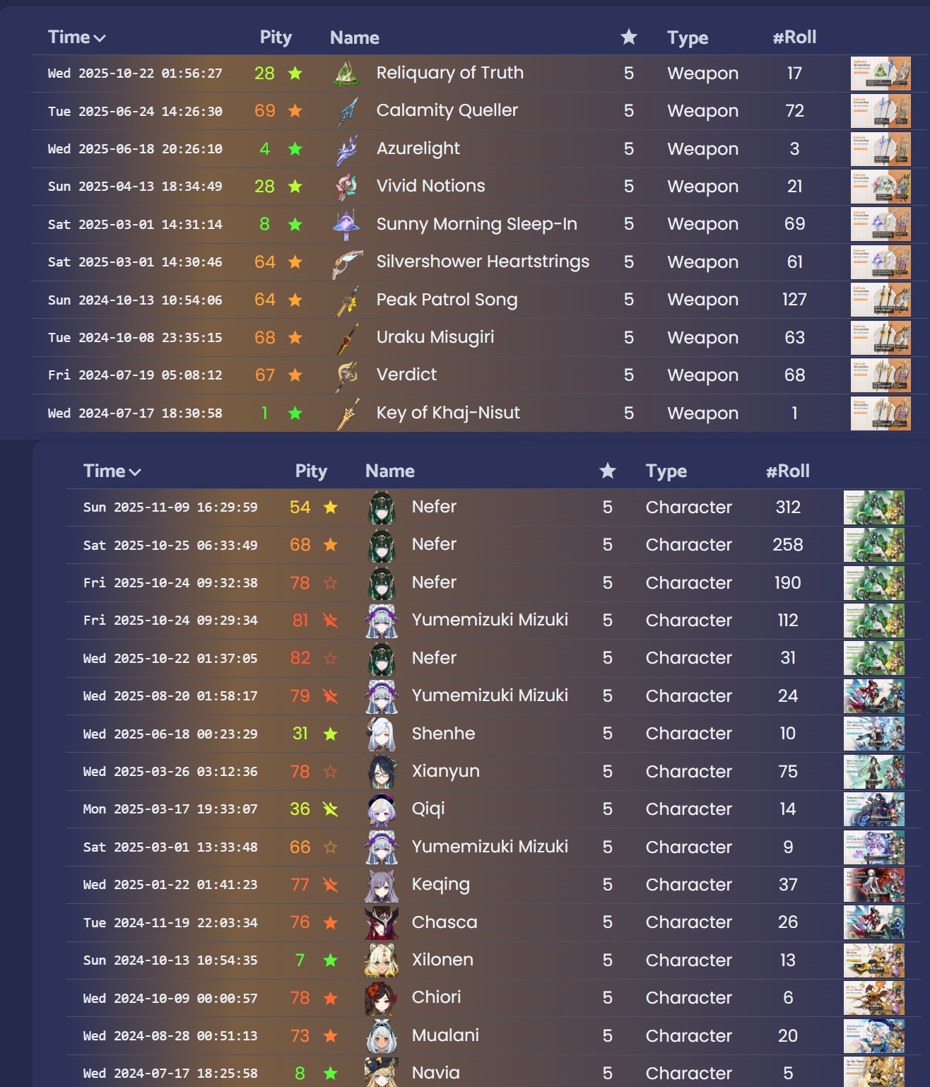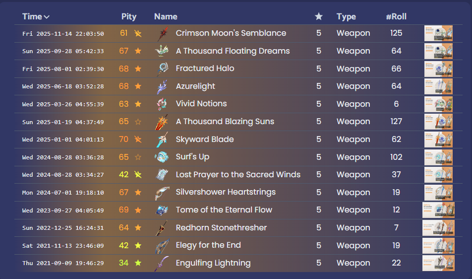 >Current weapon banner: Crimson Moon's Semblance (Polearm), Vortex Vanquisher (Polearm)