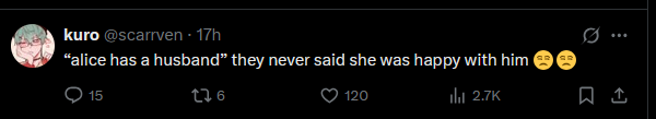 nobody is actually mad that alice is married and had sex.