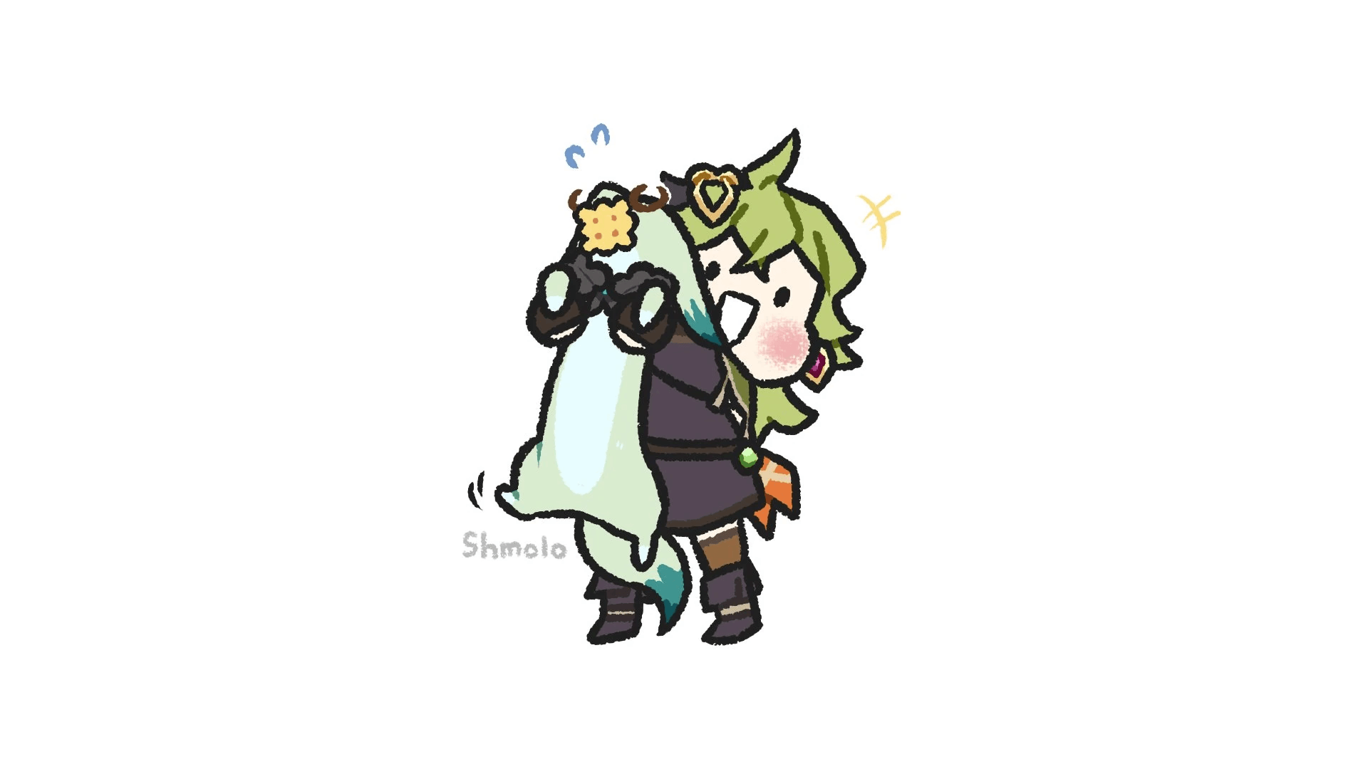 I wanted to do a full piece of his birthday but I've been busy so all I can do is some chibislop based around the 5.6 event where he seemed to really want a pet and a mini Sigewinne sketch. Love me Duke, simple as.