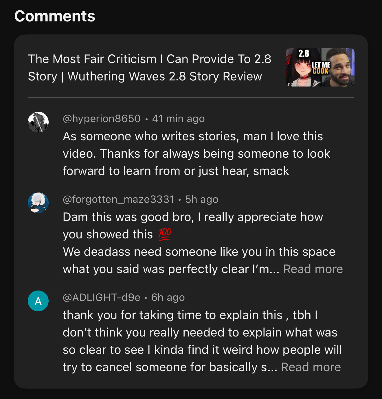 >>547554903>>547555421Also >>547555034More than half the audience didn't even understand what even happened in that quest and for confused later in the story because they did the same kind of status quo preserving writing that most gacha is infamous for.