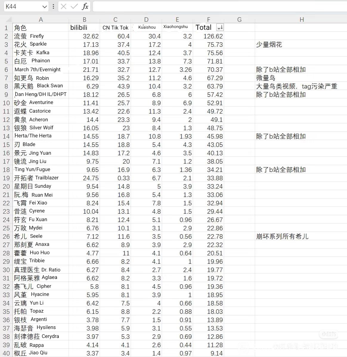 >>547631728Also forgot to mention, technically Black Swan doesnt crack the top 25.She is there because of people actually searching other stuff, the HSR related stuff is much lower.